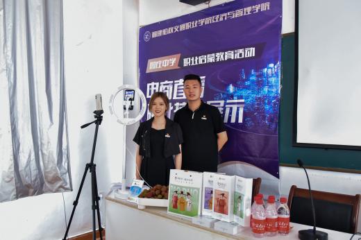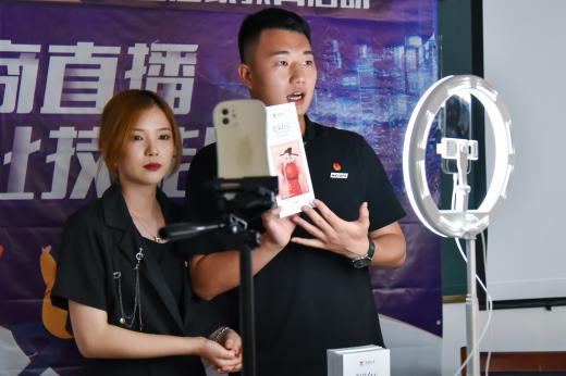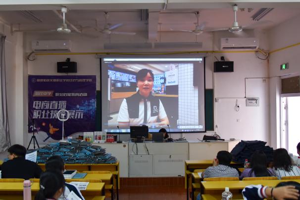 電商直播作為網(wǎng)絡(luò)直播的商業(yè)化應(yīng)用,逐漸成為擴(kuò)大內(nèi)需、助推內(nèi)循環(huán)的新引擎。在本次活動(dòng)中,2019級(jí)市場(chǎng)營(yíng)銷1班許明澤與鄧陳丹兩位學(xué)生通過(guò)現(xiàn)場(chǎng)搭建電商直播間進(jìn)行了電商直播職業(yè)技能的展示。在同學(xué)們的眼中直播的設(shè)備與場(chǎng)景是那么得新奇、有趣,在他們的心中埋下的職業(yè)與夢(mèng)想的種子。通過(guò)觀看哥哥姐姐們的直播展示,臺(tái)下的同學(xué)們興奮不已,躍躍欲試,爭(zhēng)先恐后地上臺(tái)參與到直播體驗(yàn)中。在兩位主播的耐心引導(dǎo)下,參與的同學(xué)們自信地模仿著,直觀地了解職業(yè)教育、認(rèn)識(shí)職業(yè)教育、體驗(yàn)職業(yè)教育的精彩,切身感受到職業(yè)教育的魅力。