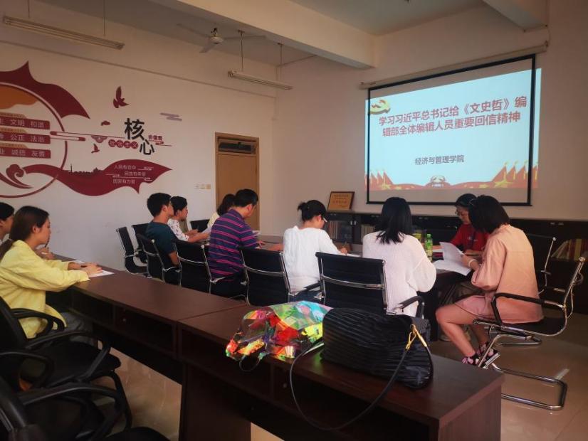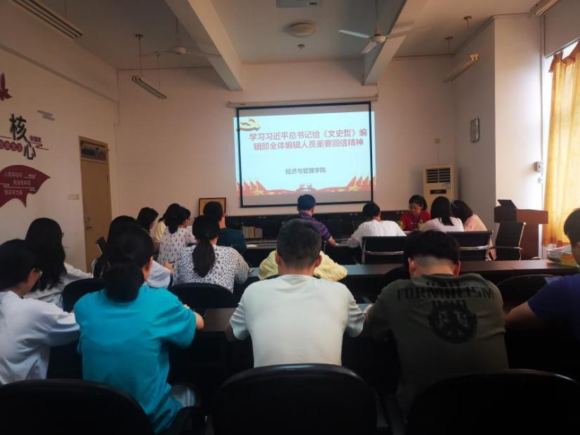 為了深刻領(lǐng)會(huì)學(xué)習(xí)習(xí)近平總書記重要回話精神,將教育的重要論述與黨史學(xué)習(xí)教育結(jié)合起來,推進(jìn)理論創(chuàng)新,培養(yǎng)我院師生銳意進(jìn)取的處事態(tài)度。經(jīng)濟(jì)與管理學(xué)院組織全體師生于6月10日展開深入學(xué)習(xí)貫徹習(xí)近平總書記給《文史哲》編輯部全體人員重要回信精神。