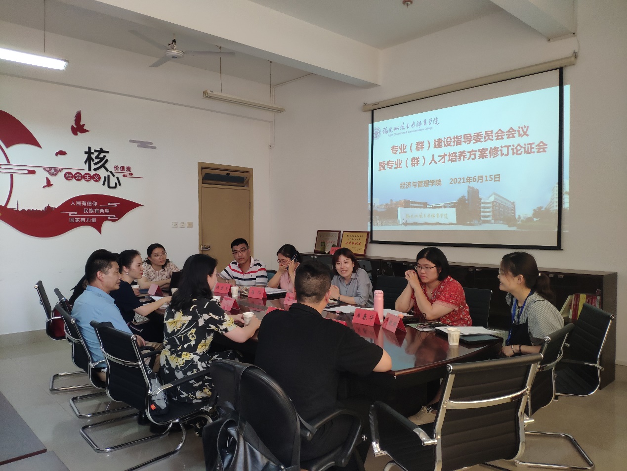 經(jīng)濟(jì)與管理學(xué)院于2021年6月15日下午,在南區(qū)31#經(jīng)管學(xué)院會議室召開專業(yè)(群)建設(shè)指導(dǎo)委員會會議暨專業(yè)(群)人才培養(yǎng)方案修訂論證會。會議邀請了福建省電子商務(wù)協(xié)會專家劉軼華教授、福州會計云教育咨詢有限公司財務(wù)總監(jiān)王芬、德邦物流股份有限公司人事部高級經(jīng)理蘇恒、福州沃克斯物流有限公司林莉莉總經(jīng)理、福州金拱門食品有限公司黃燕平經(jīng)理等行業(yè)企業(yè)的專家出席。經(jīng)管學(xué)院領(lǐng)導(dǎo)、教研室主任、專業(yè)帶頭人等參加了會議。