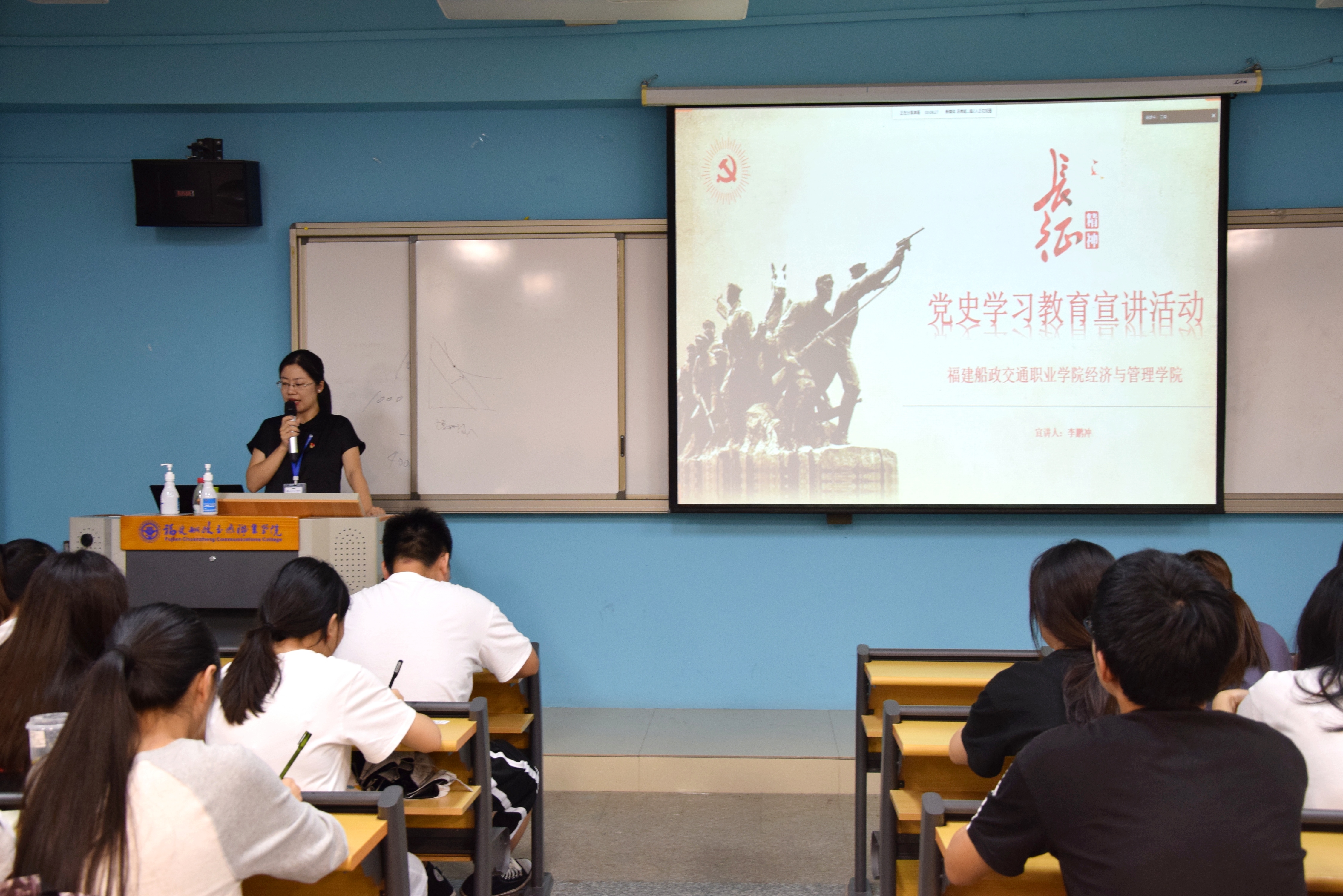 為慶祝中國共產黨成立100周年,扎實開展黨史學習教育,真正把學黨史、憶初心、感黨恩作日常學習的重要內容,6月24日,在南區(qū)31號樓408教室,經濟與管理學院第二黨支部書記李鵬沖為支部學生黨員及入黨積極分子開展以“弘揚長征精神”為主題的黨史學習教育專題黨課。