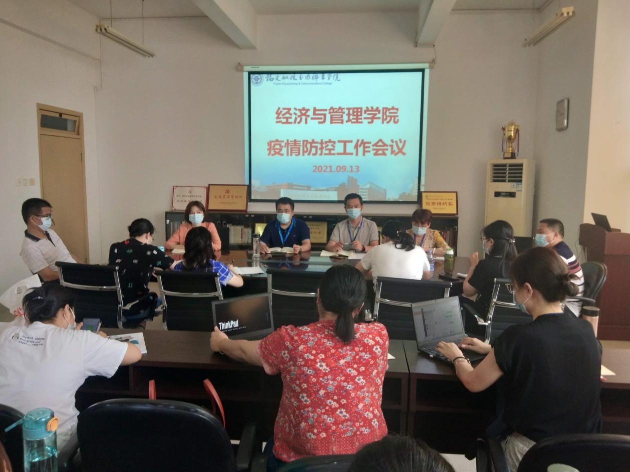 9月13日下午,經濟與管理學院召開疫情防控工作會議,傳達了全省教育系統(tǒng)疫情防控視頻工作會議的精神指示,并部署我院相關工作。房曰榮院長主持會議,學院領導、各教研室主任、實訓中心主任、辦公室主任、團委書記、全體輔導員、支部書記副書記出席會議。