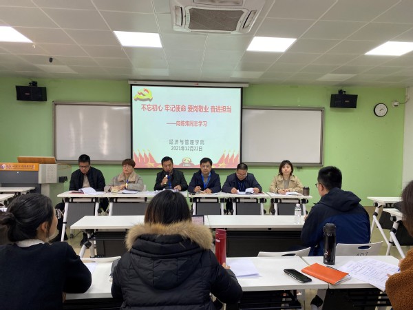 為鼓勵引導學院全體黨員教師見賢思齊,愛崗敬業(yè)、立德樹人,發(fā)揮黨員的先鋒模范帶頭作用,12月22日下午,經(jīng)濟與管理學院在31#407開展了“不忘初心牢記使命愛崗敬業(yè)奮進擔當”——向陳煒同志學習的活動,追憶緬懷陳煒同志生為人師、歿如紅燭的感人事跡與高尚品質(zhì)。學院全體教職工參加了此次活動?;顒佑牲h總支書記俞素平主持。