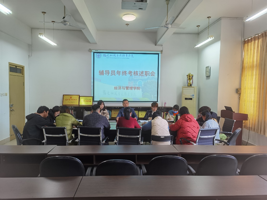 為進一步提高學(xué)院輔導(dǎo)員的思想政治素養(yǎng)和教育管理能力,經(jīng)濟與管理學(xué)院于2021年12月29日舉辦了2021年輔導(dǎo)員年終考核述職大會,并作年度工作總結(jié)。經(jīng)濟與管理學(xué)院黨總支書記俞素平、副書記林麗萍及經(jīng)濟與管理學(xué)院全體輔導(dǎo)員參加會議。