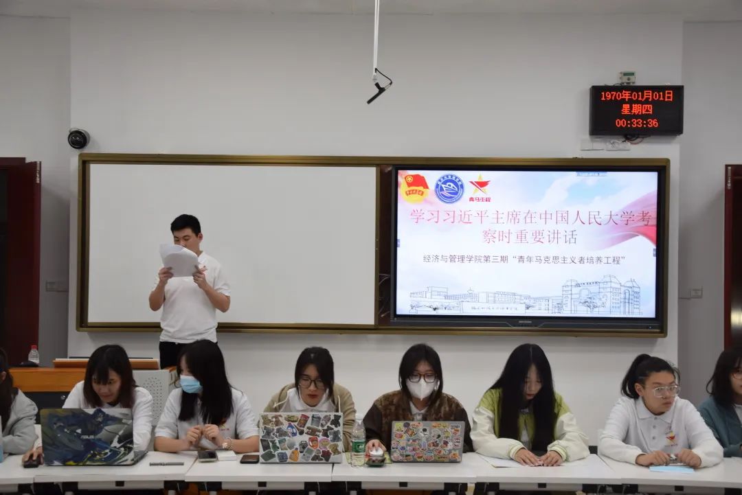 為深入學(xué)習(xí)貫徹習(xí)近平總書記系列重要講話精神,落實“青年馬克思主義者培養(yǎng)工程”要求,大力推進我院共青團的任務(wù),努力培養(yǎng)一批有理想、有道德、有文化、有紀律的骨干人才,2022年4月30日——5月2日,經(jīng)濟與管理學(xué)院舉行了第三期“青年馬克思主義者培養(yǎng)工程”暨“團學(xué)干部儲備班”。參加本次開班儀式的有校團委書記陳慧、經(jīng)濟與管理學(xué)院團委書記傅一丹、青馬班班主任謝鑫以及本期青馬班全體成員。