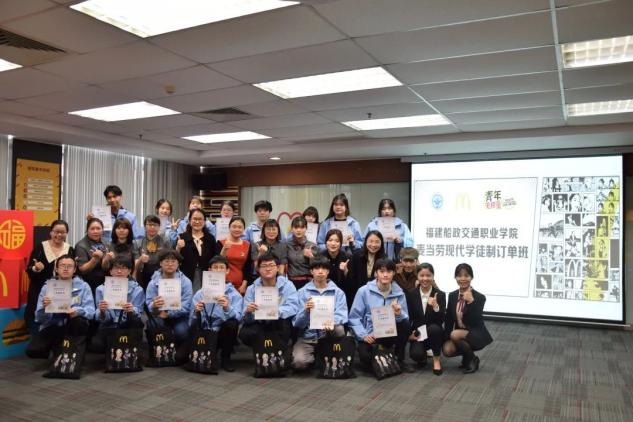 2021級(jí)市場(chǎng)營(yíng)銷專業(yè)第二屆麥當(dāng)勞現(xiàn)代學(xué)徒制訂單班開班儀式在麥當(dāng)勞福州的總部舉行。