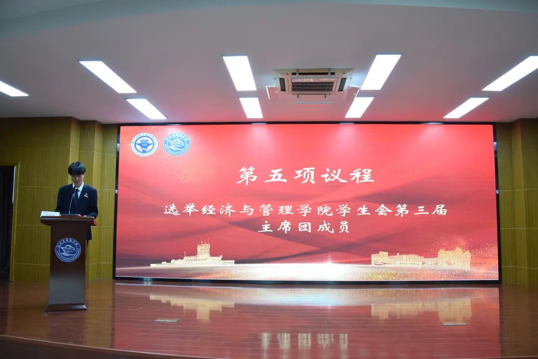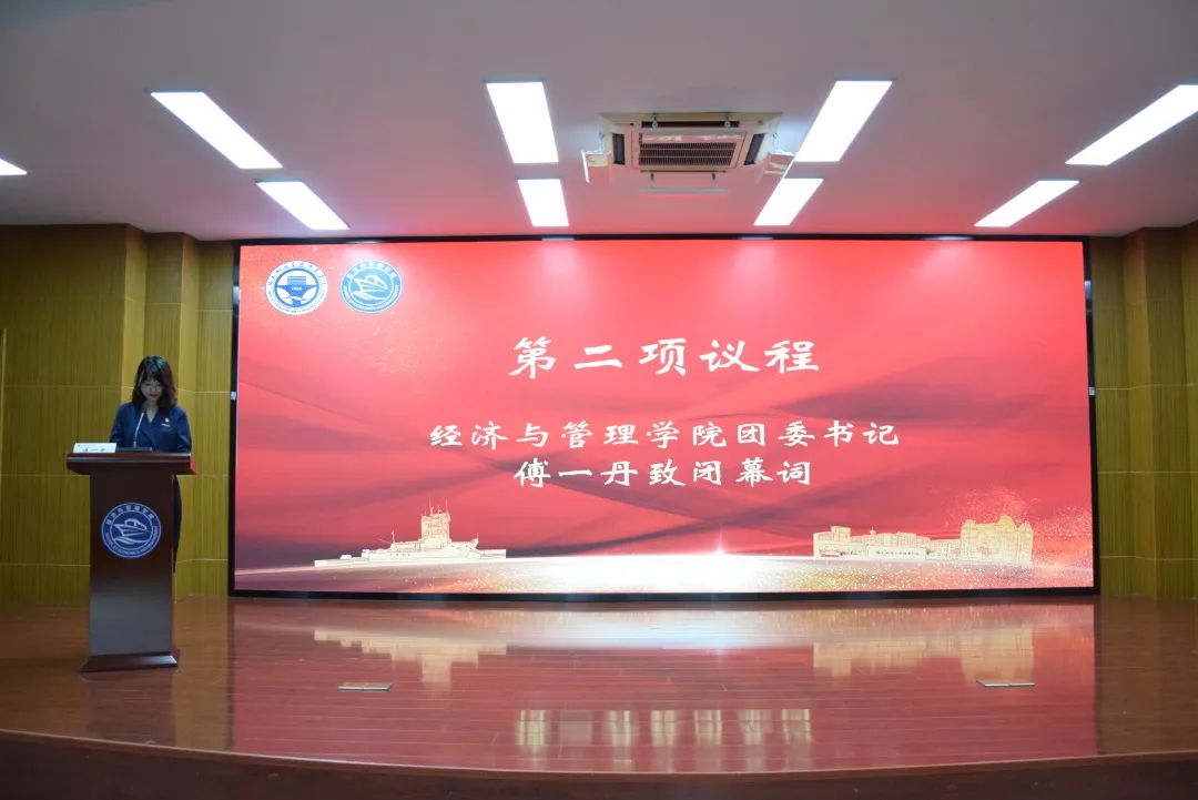 會(huì)議最后,經(jīng)濟(jì)與管理學(xué)院團(tuán)委書記傅一丹為學(xué)代會(huì)閉幕式致辭。經(jīng)濟(jì)與管理學(xué)院第三屆學(xué)生代表大會(huì)在嘹亮的校歌中圓滿落幕!
