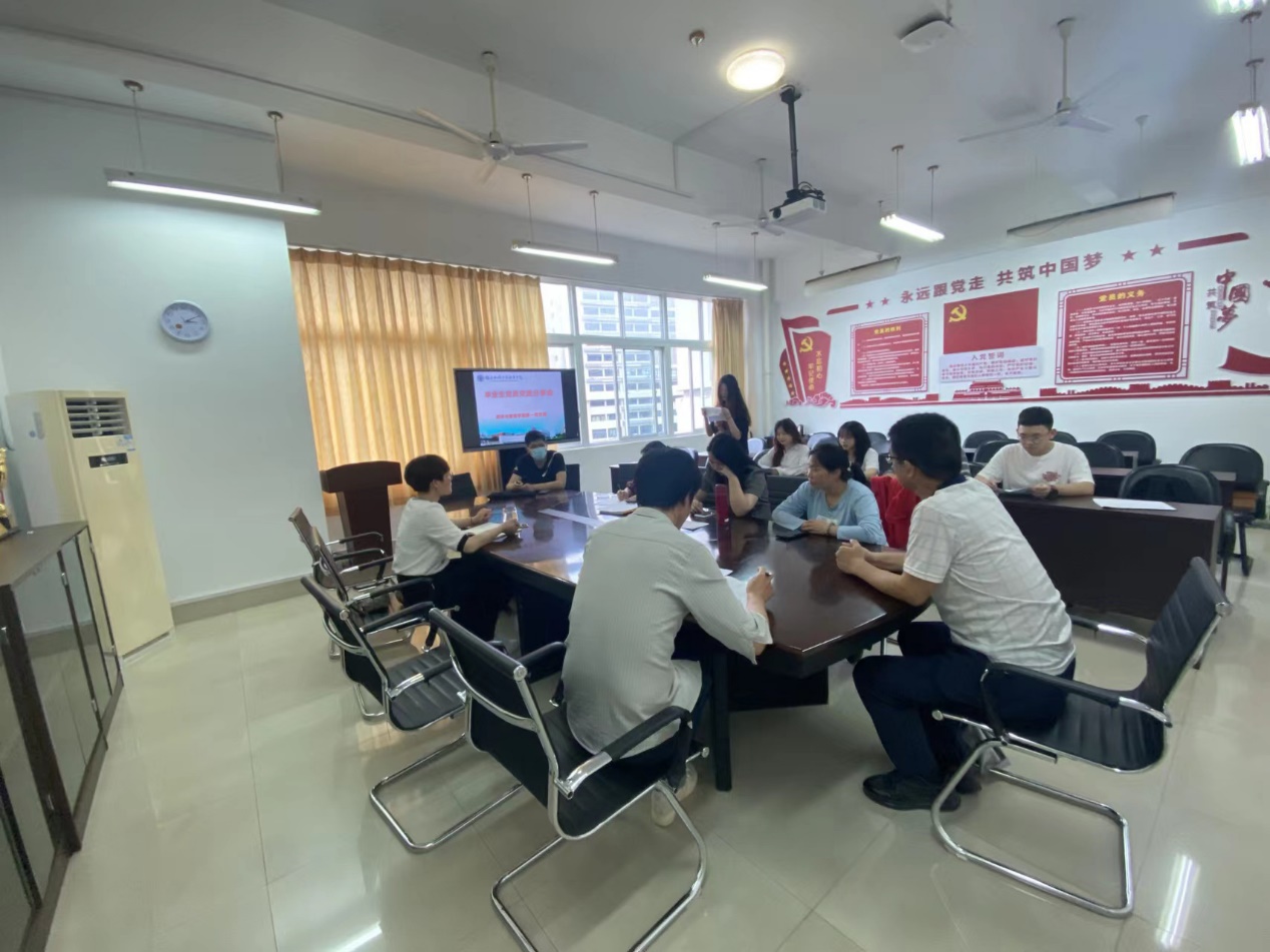 在畢業(yè)黨員離開母校之際,黨總支副書記林麗萍為畢業(yè)生黨員上最后一次黨課,作“最后一公里”教育。帶領(lǐng)大家學(xué)習(xí)了習(xí)近平總書記在慶祝中國共青團(tuán)成立100周年大會上的重要講話和習(xí)近平總書記給南京大學(xué)留學(xué)歸國青年學(xué)者的回信精神,勉勵同學(xué)們牢記總書記的殷切期望,要心系“國家事”、肩扛“國家責(zé)”,在各個學(xué)習(xí)、工作崗位上展現(xiàn)青年黨員的良好風(fēng)貌,繼續(xù)書寫共產(chǎn)黨人的奮斗篇章!