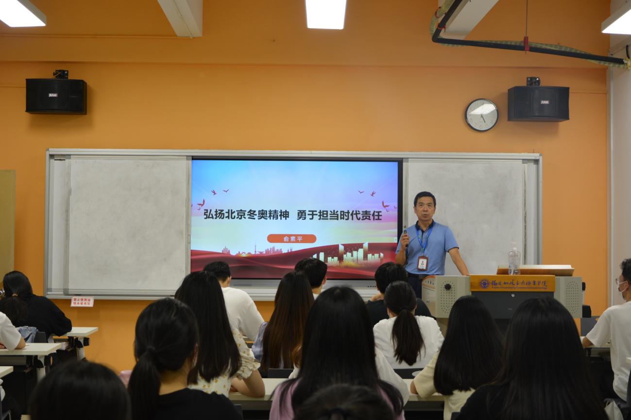 為深入學(xué)習(xí)貫徹習(xí)近平總書記在北京冬奧表彰大會上的重要講話精神,弘揚“胸懷大局、自信開放、迎難而上、追求卓越、共創(chuàng)未來”的冬奧精神。2022年6月21日晚,經(jīng)濟與管理學(xué)院黨總支書記俞素平為學(xué)院2020級會計專業(yè)部分學(xué)生開展“弘揚北京冬奧精神,勇于擔(dān)當(dāng)時代責(zé)任”形勢與政策課。