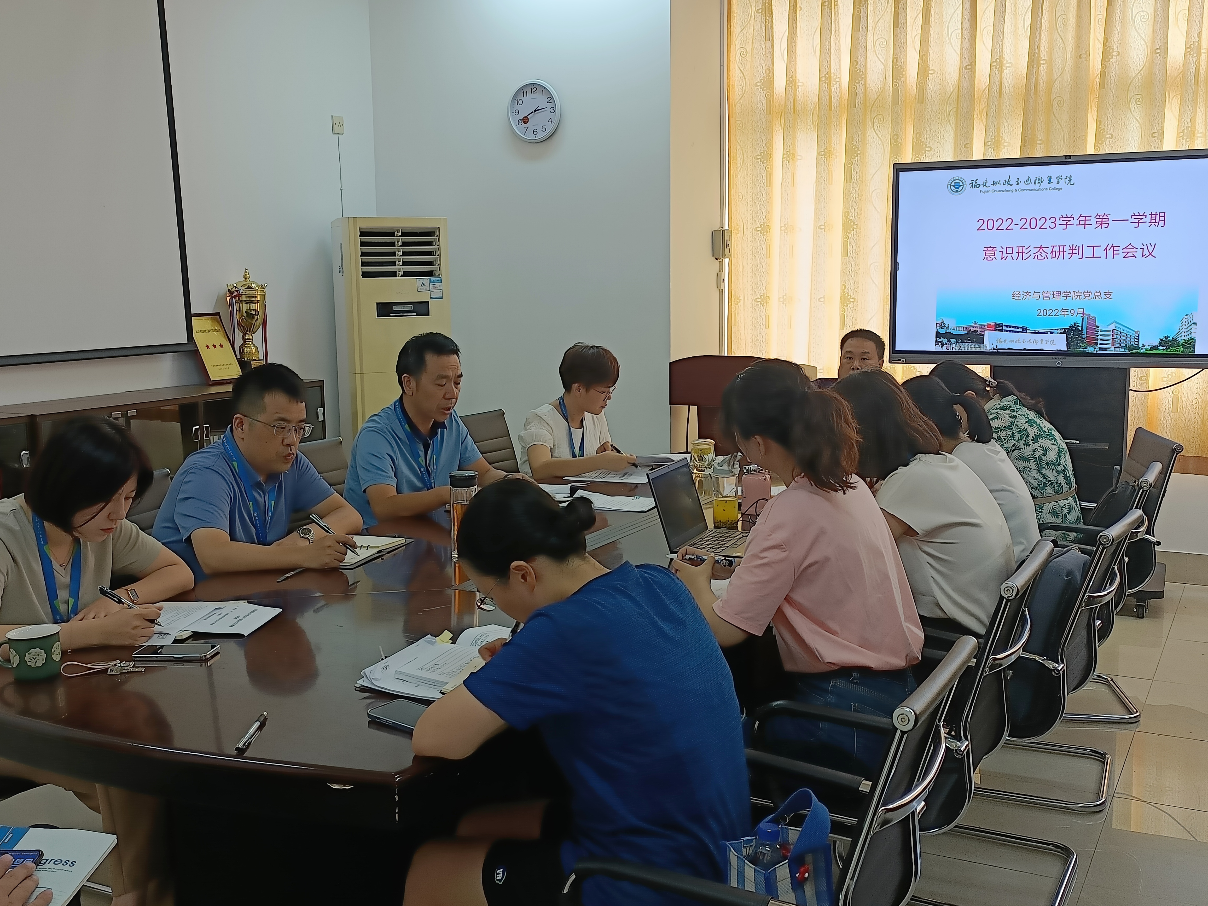 為推動意識形態(tài)工作責任制落實,切實維護好、鞏固好學院意識形態(tài)領域安全穩(wěn)定,推動意識形態(tài)工作深層次開展,9月7日,我院召開2022-2023學年第一學期意識形態(tài)研判工作會議。學院副科級以上干部、各支部書記(副書記)、教研室主任(含實訓中心)參加了此次會議。會議由院黨總支書記俞素平主持。