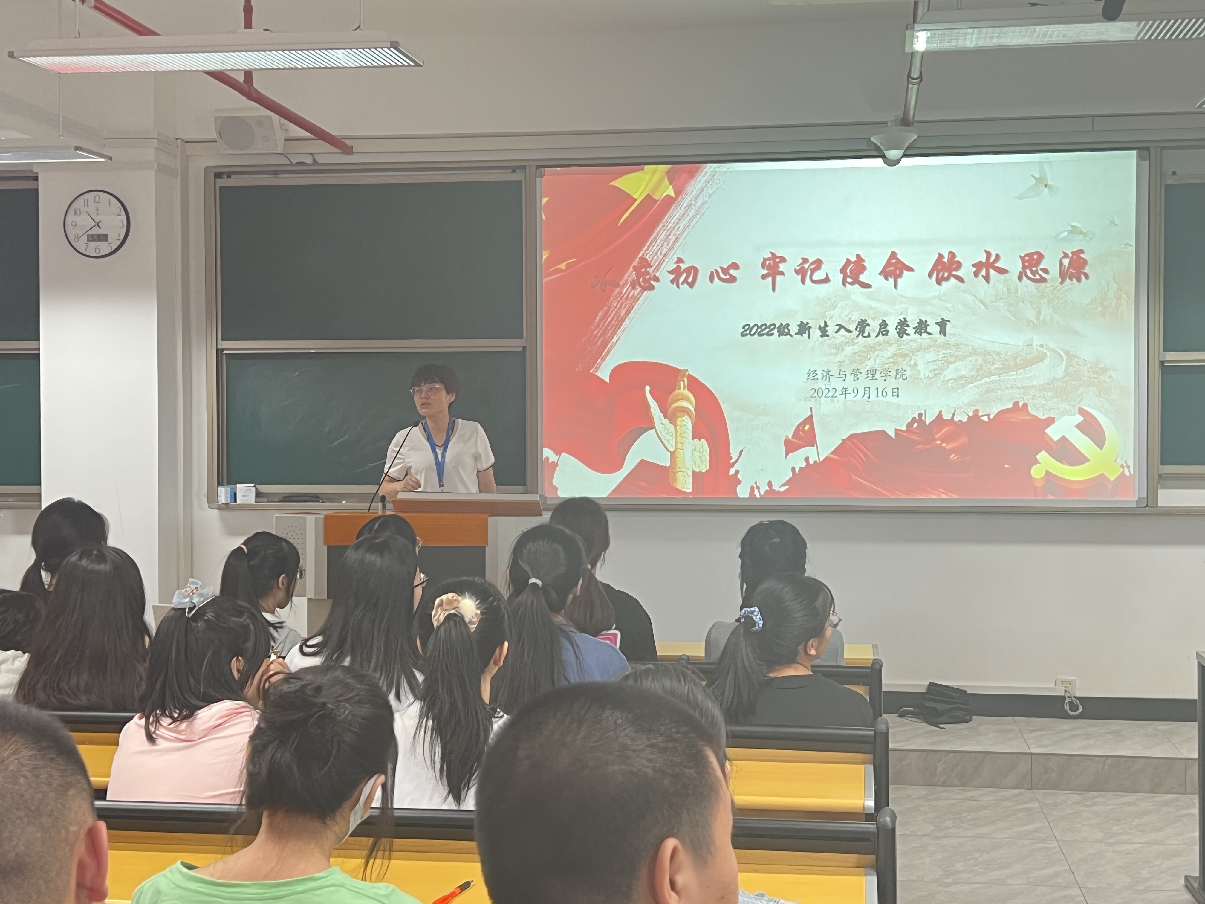 為提高新生對中國共產(chǎn)黨的認(rèn)識(shí),引導(dǎo)新生積極向黨組織靠攏,指引新生聽黨話、跟黨走,自覺傳承紅色基因,以前進(jìn)的姿態(tài)迎接黨的二十大的召開,近日,經(jīng)濟(jì)與管理學(xué)院開展以“入黨啟蒙筑初心 新生奮進(jìn)正當(dāng)時(shí)”新生入黨啟蒙教育“五個(gè)一”系列活動(dòng)。