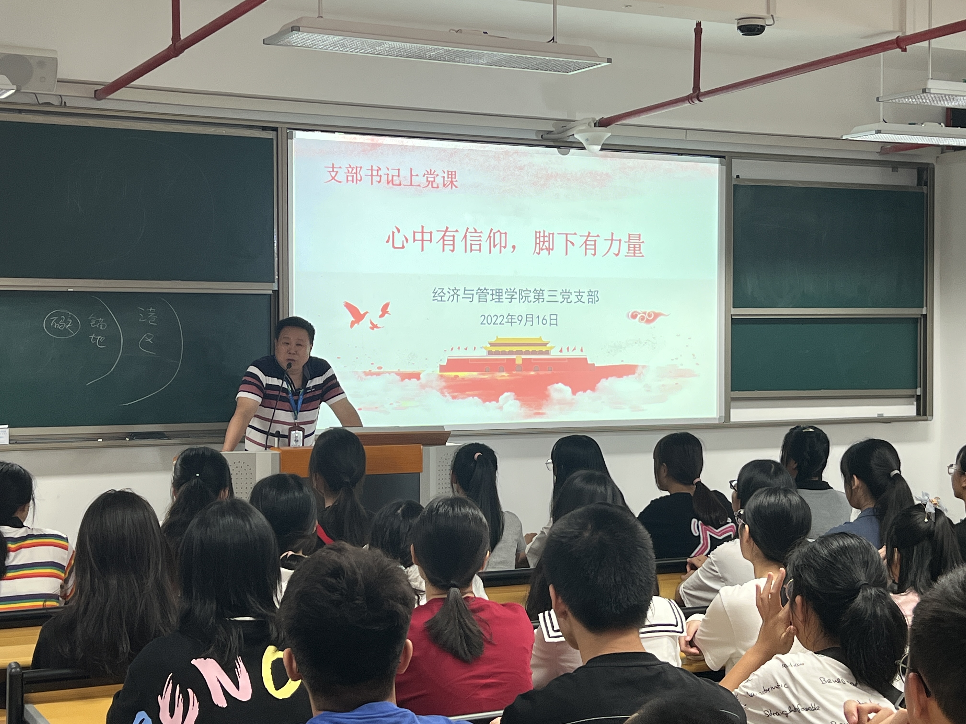 新生入學(xué)教育期間,經(jīng)濟(jì)與管理學(xué)院新生輔導(dǎo)員們?yōu)?/span>2022級(jí)新生開展了“使命在肩 黨在我心”主題班會(huì)。通過黨史學(xué)習(xí)教育,引導(dǎo)2022級(jí)新生更深入了解黨的光輝歷程,以史為鏡、以史明志,積極向黨組織靠攏。