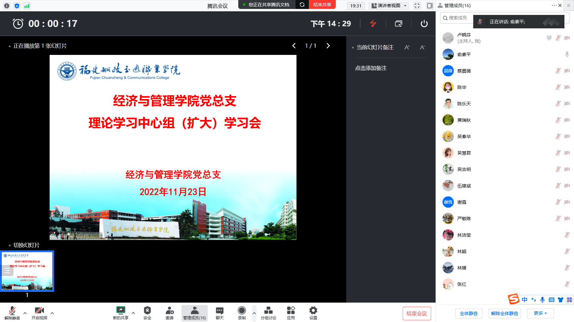 為深入學(xué)習(xí)宣傳貫徹黨的二十大精神,進一步全面學(xué)習(xí)領(lǐng)會習(xí)近平新時代中國特色社會主義思想,將黨的二十大精神內(nèi)化于心,外化于行。11月23日下午,經(jīng)濟與管理學(xué)院黨總支通過線上線下相結(jié)合的方式召開黨總支理論學(xué)習(xí)中心組(擴大)學(xué)習(xí)會,傳達(dá)學(xué)習(xí)相關(guān)文件精神。會議由黨總支書記俞素平主持。