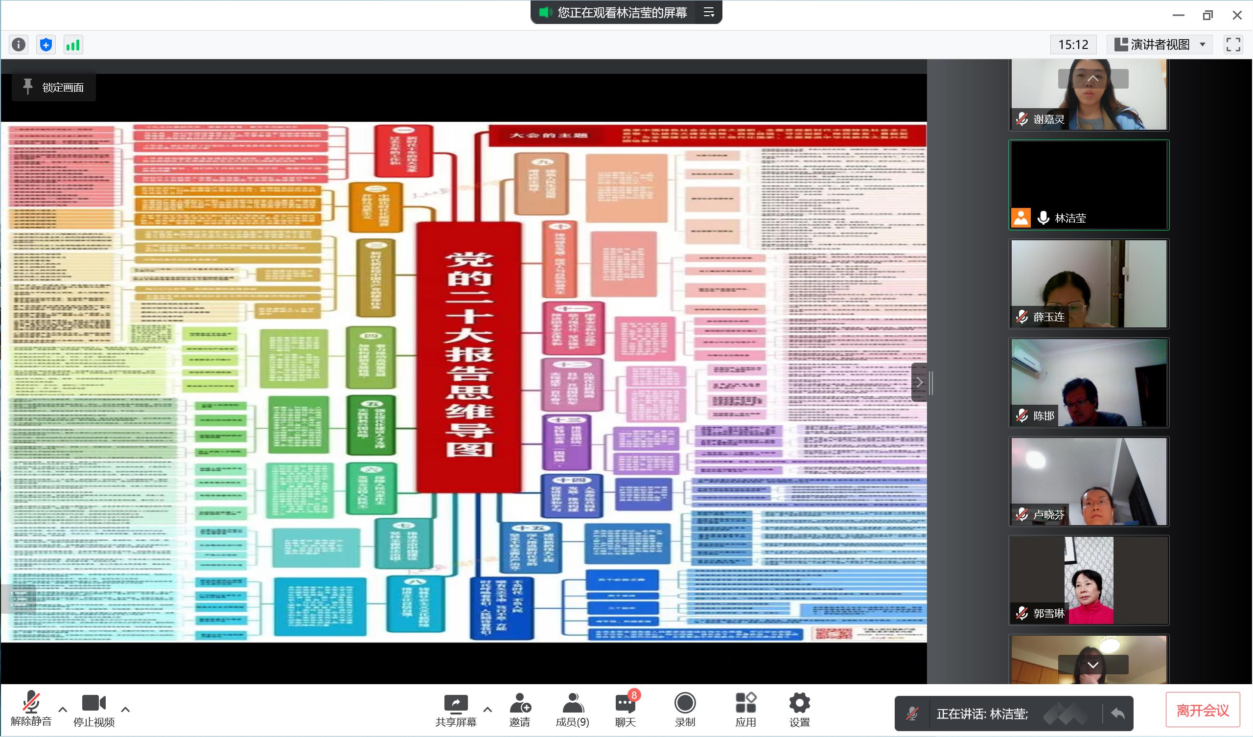 林潔瑩:今天的主題黨日活動(dòng),我們圍繞黨的二十大鮮明主題、重大意義、報(bào)告的15個(gè)方面內(nèi)容進(jìn)行解讀,聚焦新論述新論斷,重點(diǎn)對(duì)黨的二十大報(bào)告的“關(guān)鍵詞”進(jìn)行了詳細(xì)闡釋。我們要在全面學(xué)習(xí)、全面把握、全面落實(shí)上下功夫,學(xué)深悟透,準(zhǔn)確學(xué)習(xí)把握黨的二十大精神核心要義和豐富內(nèi)涵,把學(xué)習(xí)貫徹黨的二十大精神同學(xué)院重點(diǎn)工作結(jié)合起來,以黨的二十大精神為引領(lǐng),立足本職工作,堅(jiān)守培養(yǎng)社會(huì)主義建設(shè)者和接班人的育人本色,在新時(shí)代新征程上為學(xué)院發(fā)展作出新的貢獻(xiàn)!