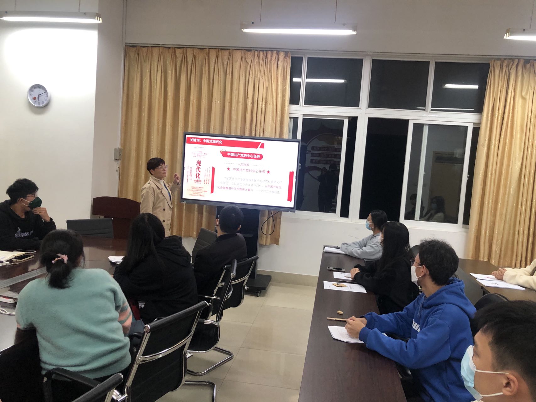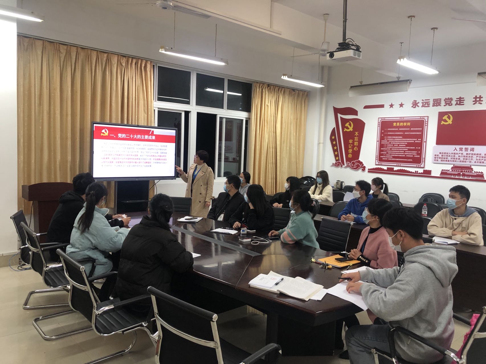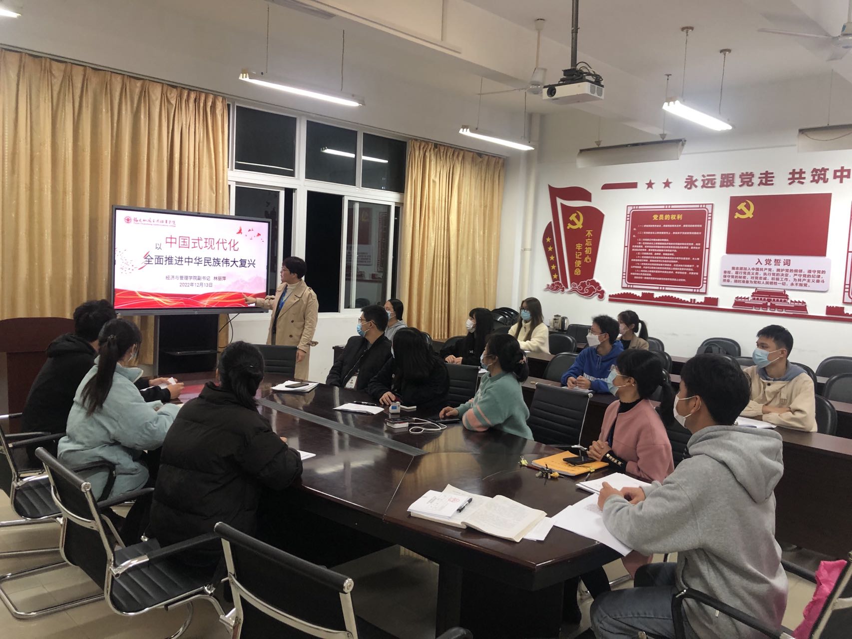 為深入學(xué)習(xí)貫徹落實(shí)黨的二十大重要講話精神, 12月13日下午,黨總支副書記、第一黨支部書記林麗萍老師在求實(shí)樓412會(huì)議室召開“以中國式現(xiàn)代化全面推進(jìn)中華民族偉大復(fù)興”為主題的黨課,支部內(nèi)全體黨員、入黨積極分子參加會(huì)議。