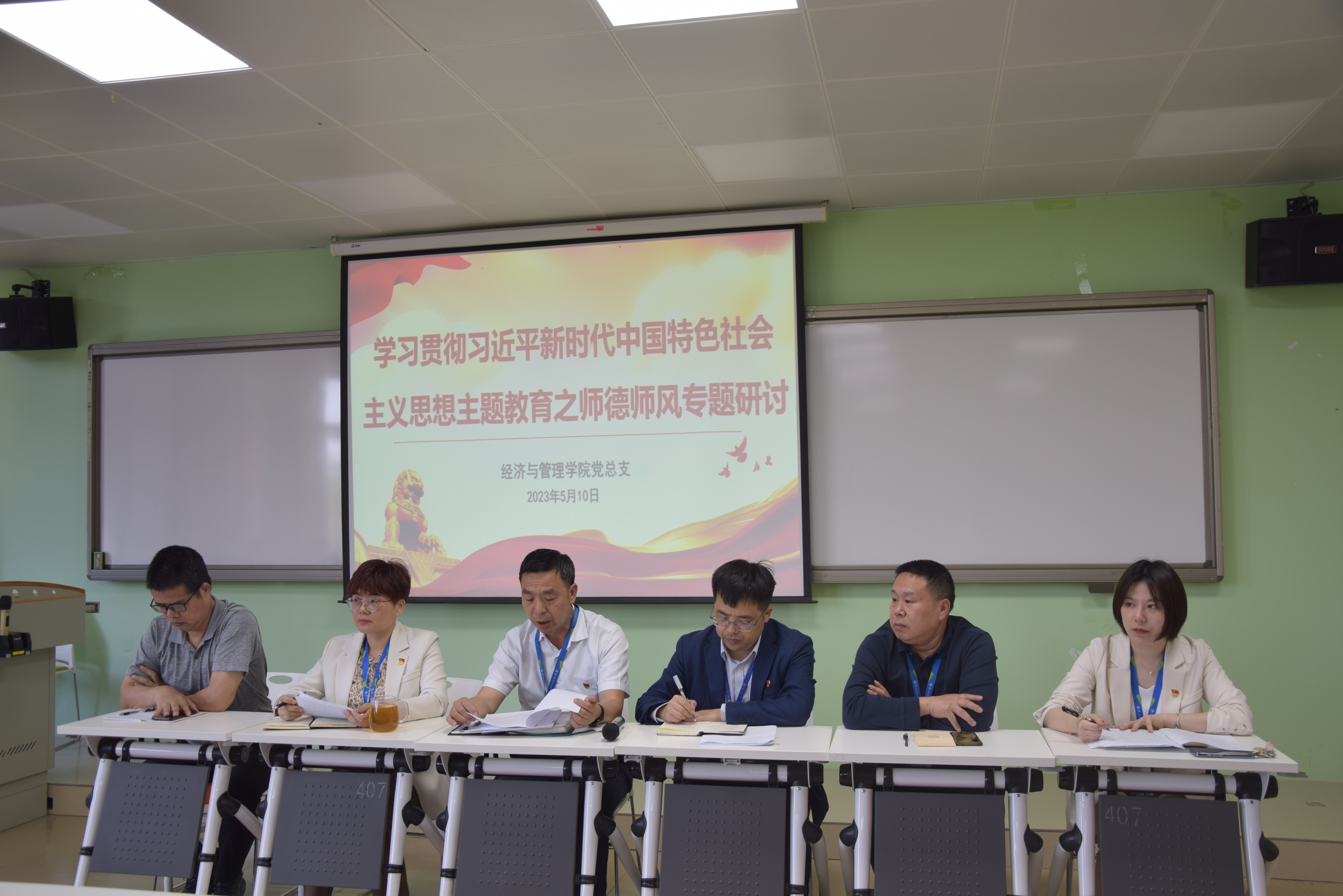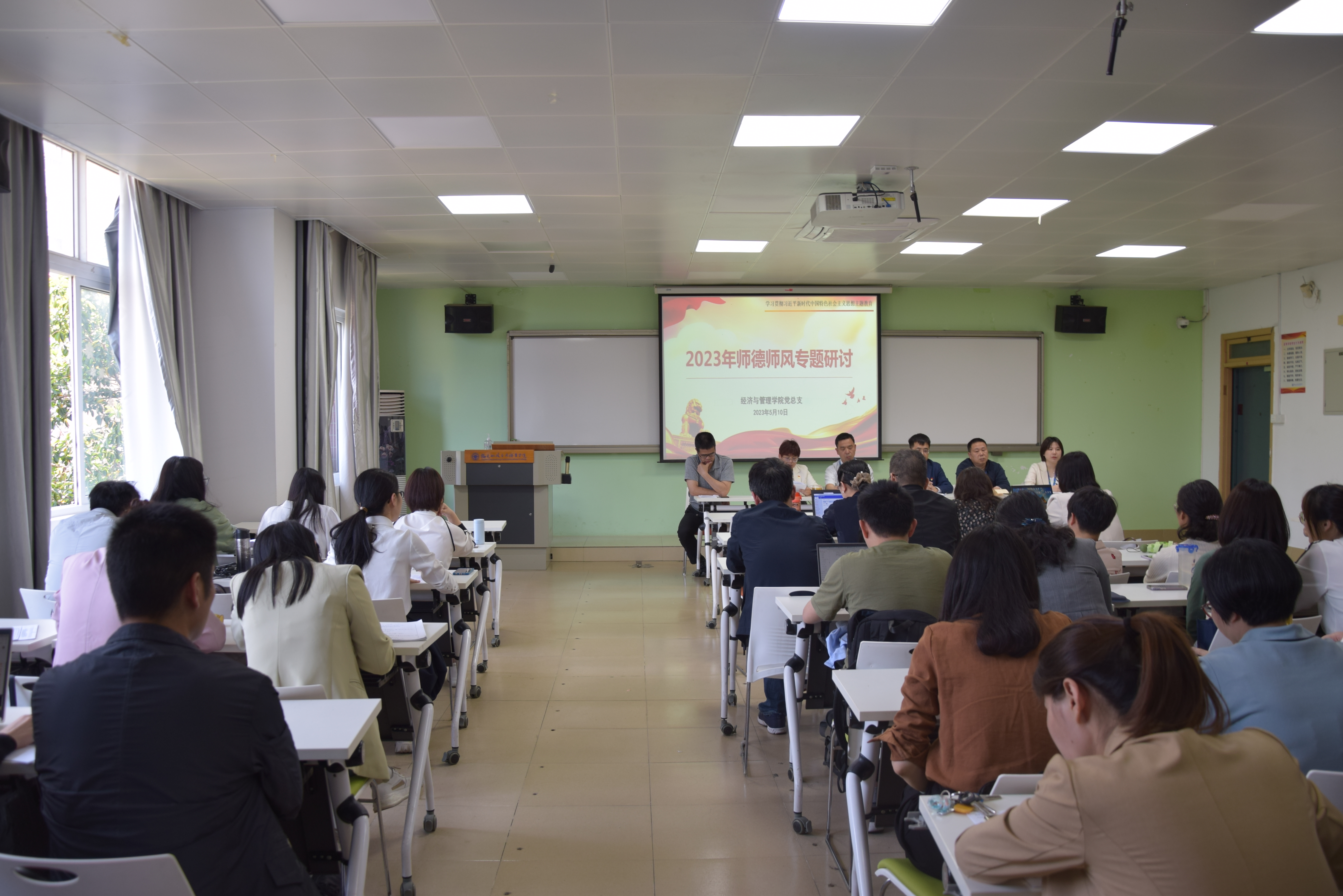 為深入貫徹落實(shí)黨的二十大精神,推進(jìn)學(xué)習(xí)貫徹習(xí)近平新時(shí)代中國特色社會主義思想主題教育走深走實(shí),進(jìn)一步加強(qiáng)教師師德師風(fēng)建設(shè),不斷提升教師思想政治素質(zhì)和職業(yè)道德水平,牢牢把握師德師風(fēng)作為評價(jià)教師隊(duì)伍素質(zhì)的第一標(biāo)準(zhǔn),積極弘揚(yáng)高尚師德,5月10日,經(jīng)濟(jì)與管理學(xué)院召開學(xué)習(xí)貫徹習(xí)近平新時(shí)代中國特色社會主義思想主題教育之師德師風(fēng)專題研討會師德師風(fēng)專題學(xué)習(xí)研討會。會議由院長房曰榮主持,學(xué)院全體教職工參加了此次活動。