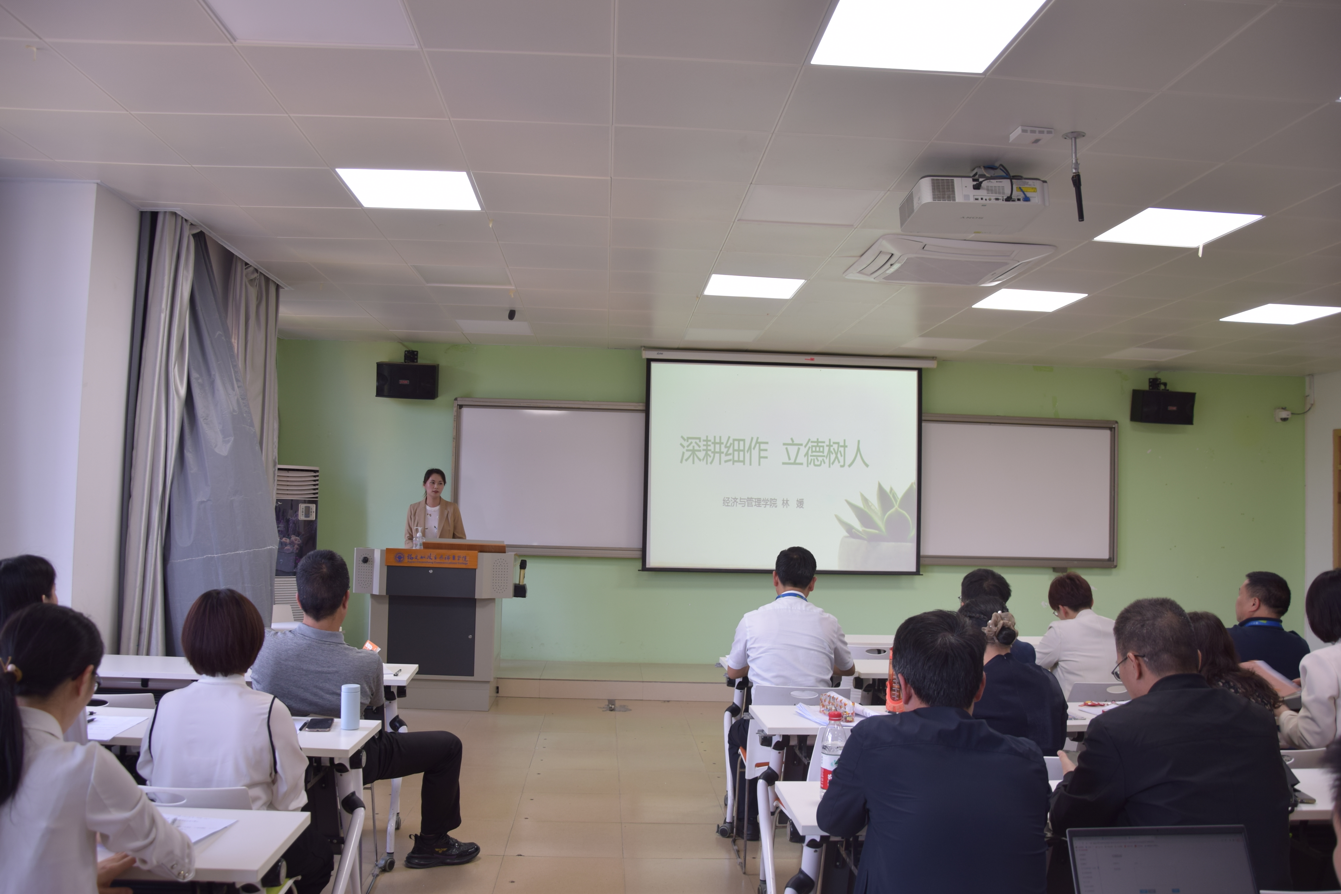 專題學(xué)習(xí)后,輔導(dǎo)員代表林媛、專任教師代表謝霓結(jié)合自身工作經(jīng)歷,分別以《深耕細(xì)作,立德樹人》《錘煉新時(shí)代師德師風(fēng),做溫暖有愛的老師》為題,以生動詳實(shí)的案例、通俗易懂的語言,分享了從教以來自己對師德的感悟,讓全體教職工體會到了師德并不是簡單地說教,而是一種精神的體現(xiàn),師德師風(fēng)也不是枯躁的理念和高舉的旗幟,它就體現(xiàn)在我們身邊,在我們的隊(duì)伍里。新時(shí)代教師應(yīng)該在三尺講臺上默默耕耘,嚴(yán)愛相濟(jì)、潤己澤人,以人格魅力呵護(hù)學(xué)生心靈,以學(xué)術(shù)造詣開啟學(xué)生智慧,讓每一個(gè)學(xué)生都健康成長。