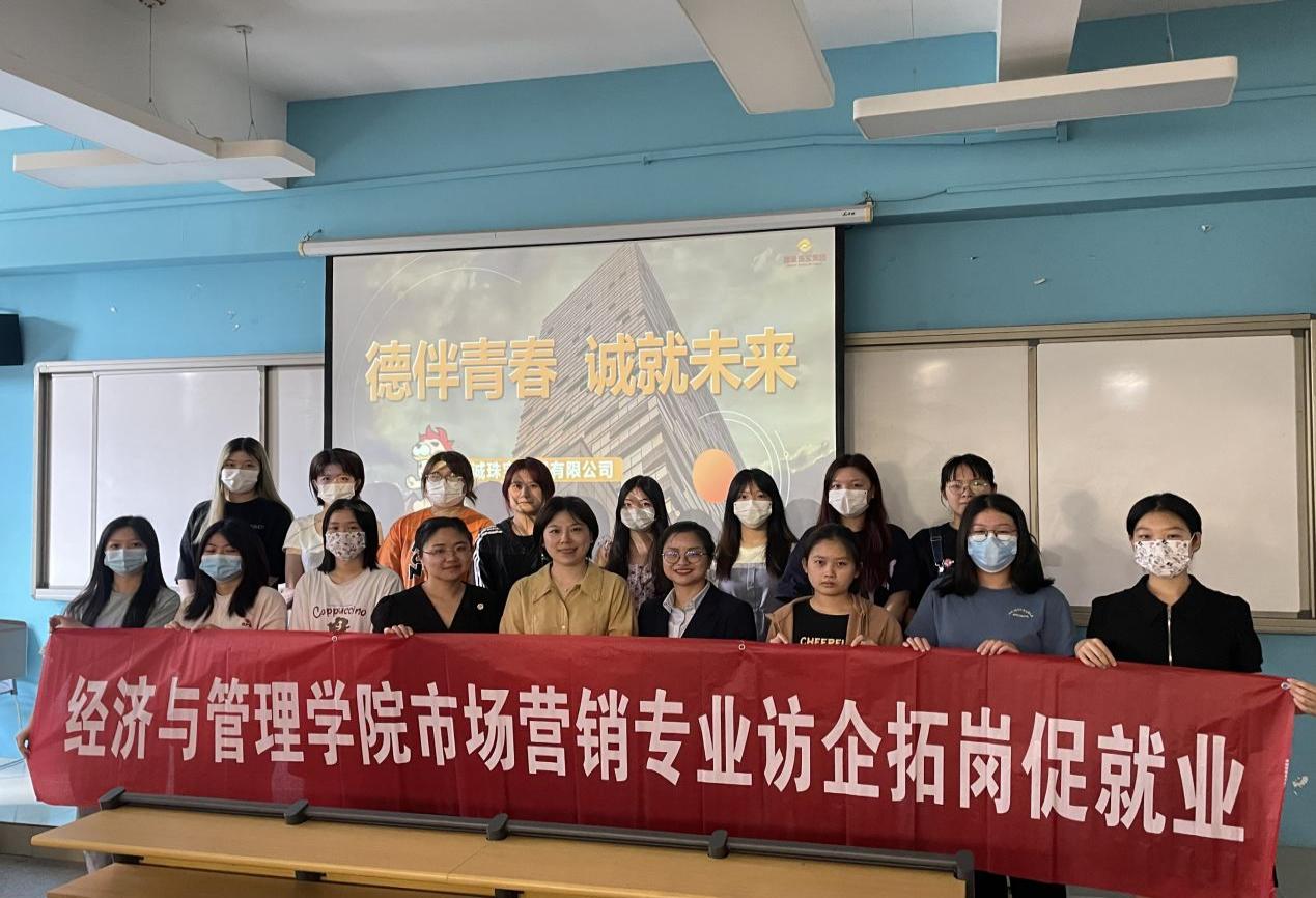 為落實教育部“訪企拓崗促就業(yè)”專項行動工作部署和要求,深化校企合作,拓寬2023屆畢業(yè)生的就業(yè)渠道,搭建用人單位與畢業(yè)生雙選平臺,促進院企互助發(fā)展和畢業(yè)生高質(zhì)量就業(yè),5月19日,經(jīng)濟與管理學院市場營銷教研室舉辦“訪企拓崗促就業(yè),名優(yōu)企業(yè)進校園”專項行動,邀請德誠集團人事招聘經(jīng)理陳秋燕進校開展校企合作交流活動。