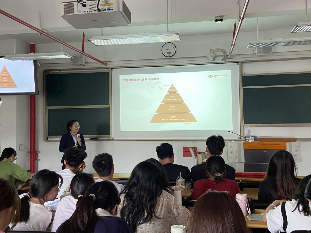 陳經(jīng)理從行業(yè)現(xiàn)狀、企業(yè)文化、企業(yè)商業(yè)模式、崗位設置等幾個方面進行分享,并結(jié)合多個案例,向同學們介紹了珠寶行業(yè)的質(zhì)量體系、新技術(shù)、新工業(yè),使同學們拓寬了眼界,加深了行業(yè)的認知。