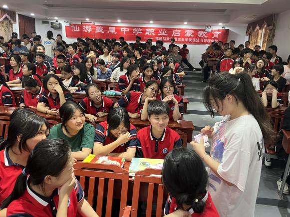 為深入學(xué)習(xí)貫徹黨的二十大精神和習(xí)近平總書記關(guān)于職業(yè)教育的重要指示批示精神,貫徹落實(shí)《國(guó)家職業(yè)教育改革實(shí)施方案》《中華人民共和國(guó)職業(yè)教育法》,培養(yǎng)中學(xué)生職業(yè)認(rèn)知和職業(yè)生涯規(guī)劃意識(shí),拓展中學(xué)生職業(yè)技能體驗(yàn)的途徑,提高職業(yè)教育的社會(huì)認(rèn)可度,樹立職業(yè)教育“有學(xué)頭、有盼頭、有奔頭”新形象。近日,我校經(jīng)濟(jì)與管理學(xué)院赴仙游縣蓋尾中學(xué),為高一年級(jí)學(xué)生帶來職業(yè)啟蒙教育課程。