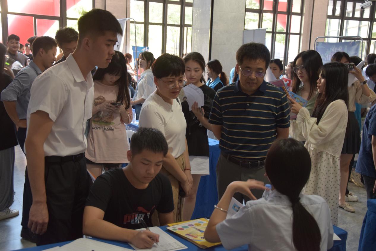 經(jīng)濟與管理數(shù)百名2024年應屆畢業(yè)生前來咨詢和面試。我院領(lǐng)導也十分重視本次招聘會,黨總支書記俞素平、院長房曰榮、副書記林麗萍、副院長林穎和學院老師一起蒞臨現(xiàn)場指導,詢問畢業(yè)生的求職就業(yè)情況,并針對性地提出建議和幫助,助力畢業(yè)生走穩(wěn)就業(yè)路。