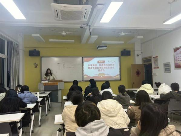 我院團(tuán)委副書記吳霜婷引用習(xí)近平總書記在主題教育工作會(huì)議上的講話要點(diǎn),點(diǎn)明思想教育的重要性,闡述思想與行動(dòng)的關(guān)系。提醒廣大青年要牢記“學(xué)思想,強(qiáng)黨性,重實(shí)踐,建新功”的總要求,始終堅(jiān)持以學(xué)鑄魂,以學(xué)增智,以學(xué)正風(fēng),以學(xué)促干,不斷提高自身思想水平、政治覺(jué)悟、道德品質(zhì)、文化素養(yǎng),做有所擔(dān)當(dāng),有所作為的新時(shí)代中國(guó)青年,積極展示當(dāng)代中國(guó)青年奮發(fā)圖強(qiáng),勇于斗爭(zhēng),拼搏向上的精神面貌。