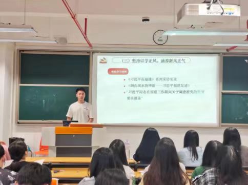 王琳老師從時(shí)代背景變化、思想形成機(jī)理的新內(nèi)涵、思想主題的新發(fā)展以及理論定位的新高度等四個(gè)方面來闡述如何理解“新的飛躍”。她希望同學(xué)們能夠主動(dòng)在全面學(xué)習(xí)、全面把握、全面落實(shí)上下功夫,爭做習(xí)近平新時(shí)代中國特色社會主義思想的堅(jiān)定信仰者、積極傳播者、忠實(shí)實(shí)踐者,讓這一思想彰顯出更加強(qiáng)大的真理力量和實(shí)踐偉力。