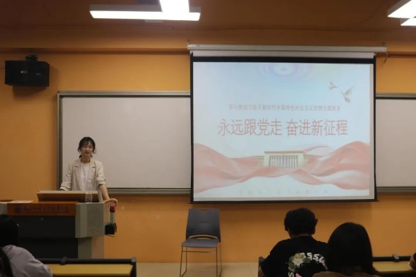 2023年5月31日,我院團(tuán)委書記傅一丹以“永遠(yuǎn)跟黨走 奮進(jìn)新征程”為主題,面向21級電子商務(wù)專業(yè)學(xué)生開展主題教育宣講。