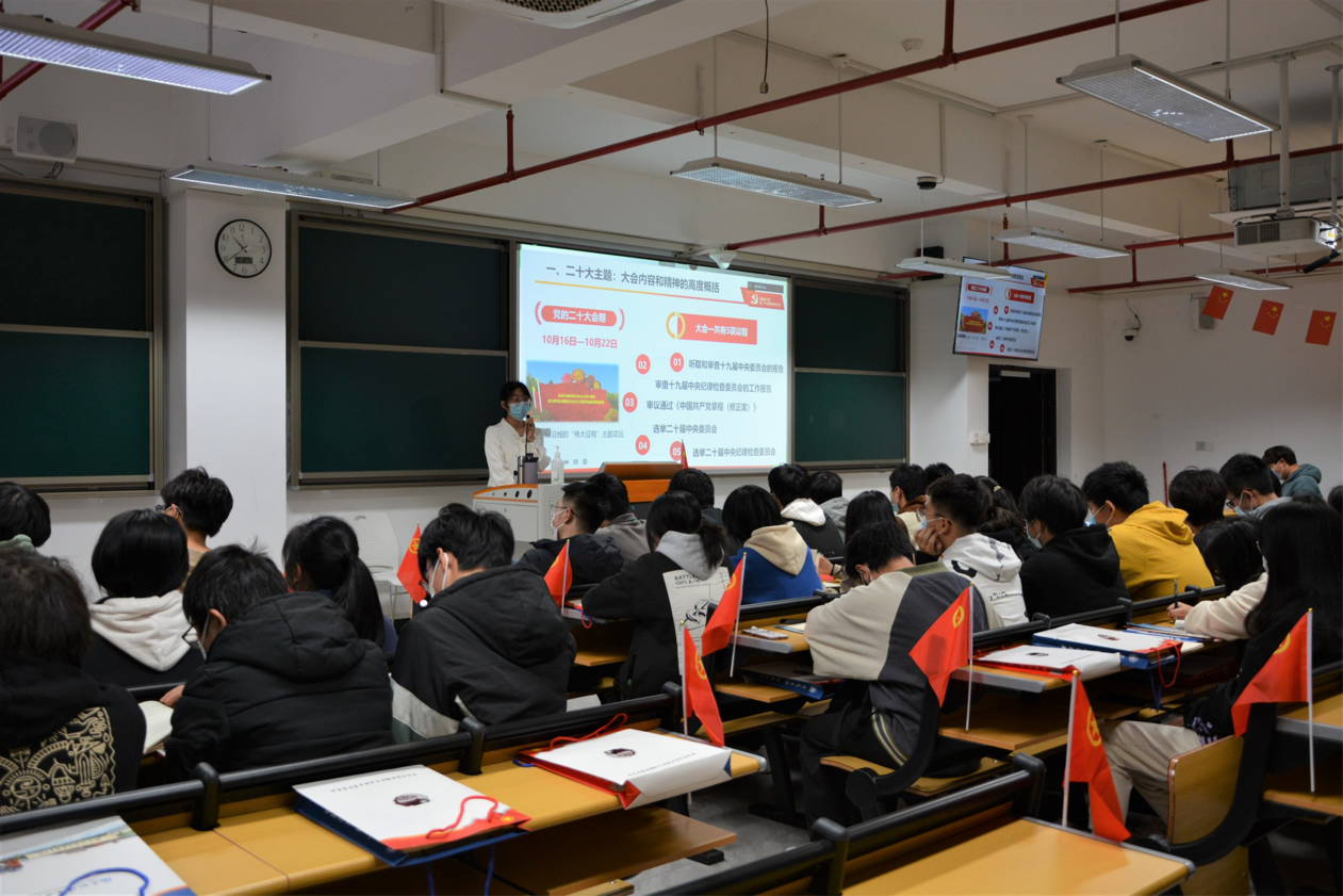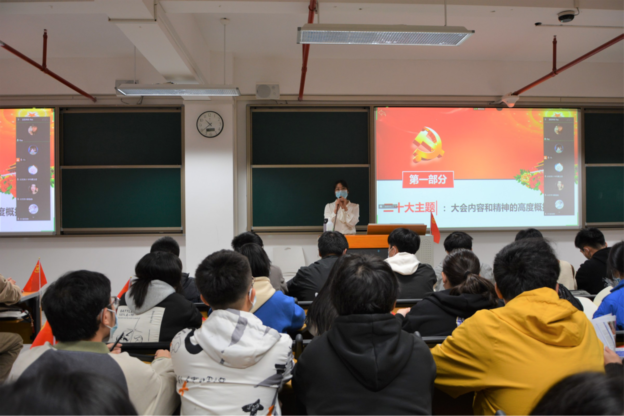 為深入學(xué)習(xí)宣傳貫徹黨的二十大精神,引導(dǎo)青年學(xué)生感悟思想偉力、汲取奮進力量, 12月12日下午,經(jīng)濟與管理學(xué)院第二黨支部書記周秋鶯在實訓(xùn)樓507教室給22現(xiàn)代物流1班、22市場營銷3班、22關(guān)務(wù)與外貿(mào)服務(wù)3班新生,開展黨的二十大精神專題宣講會。