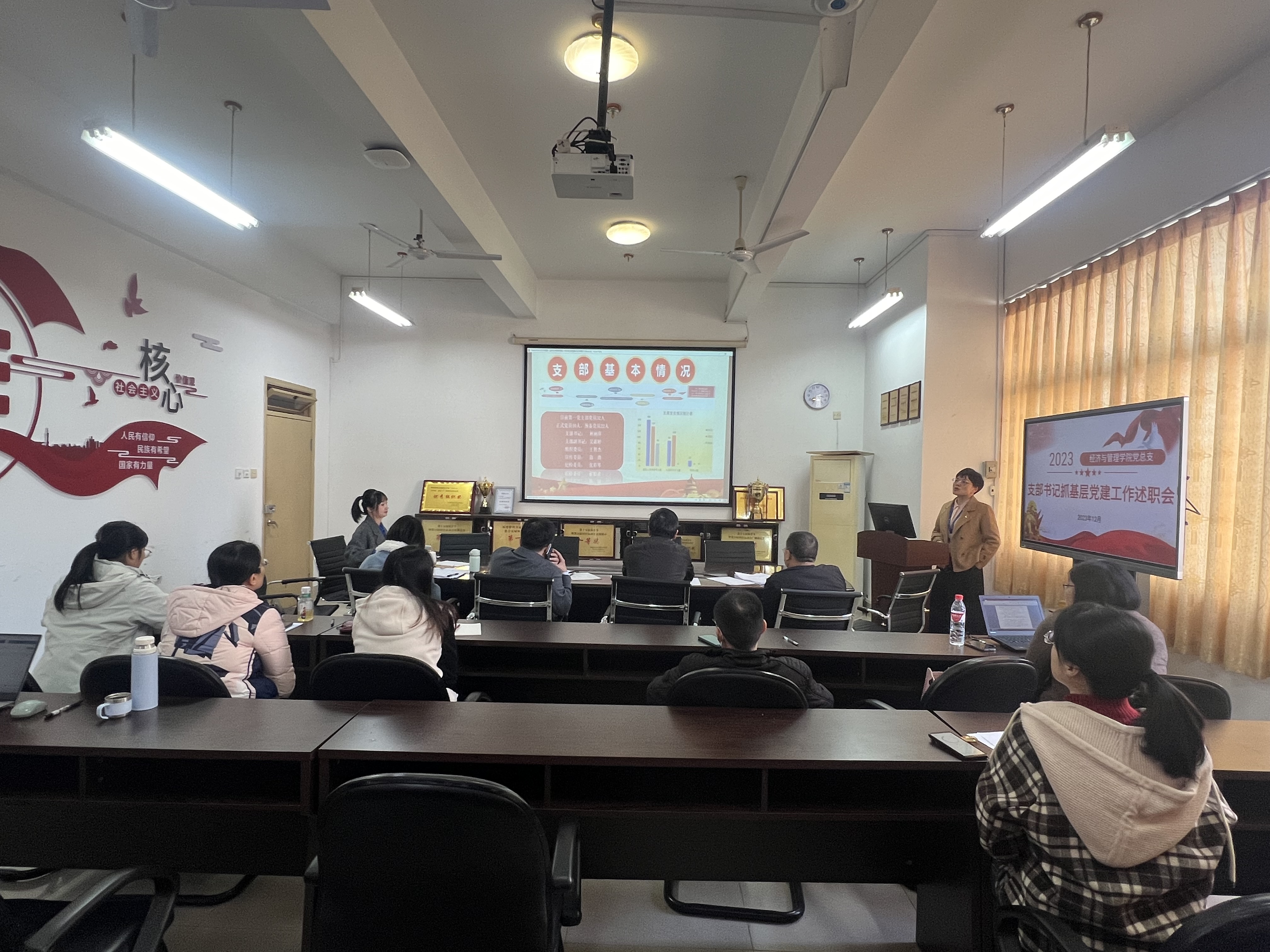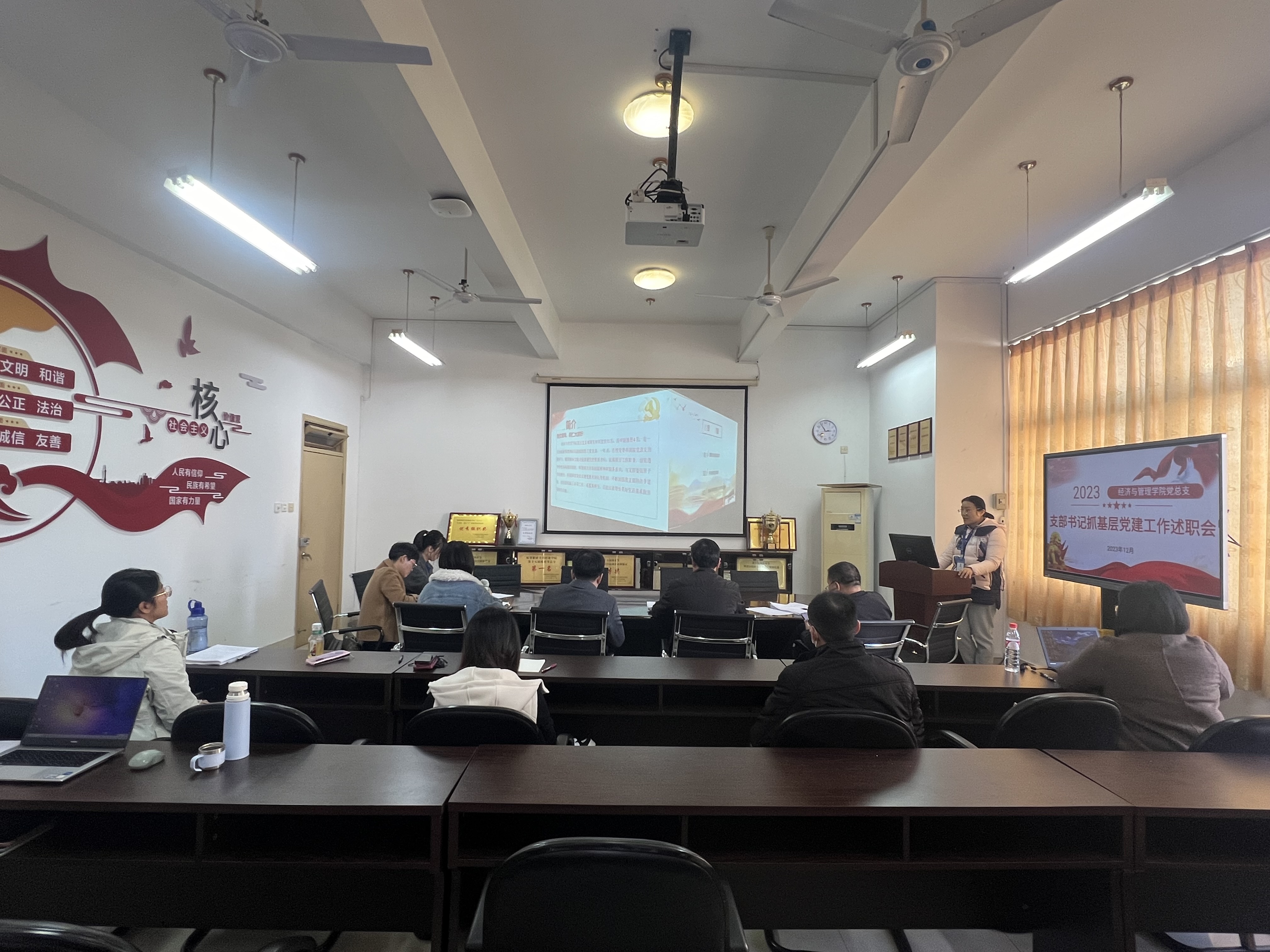 為進(jìn)一步提升基層黨組織書記履職能力,更好推動學(xué)院各項工作高質(zhì)量發(fā)展,12月28日下午,經(jīng)濟(jì)與管理學(xué)院黨總支召開2023年度基層黨組織書記抓基層黨建工作述職會,以述明責(zé)、以評促干,用實干實績實效展現(xiàn)2023年“效果圖”、譜寫2024年“新篇章”。學(xué)院副科級以上干部、各支部書記、副書記參加此次會議。