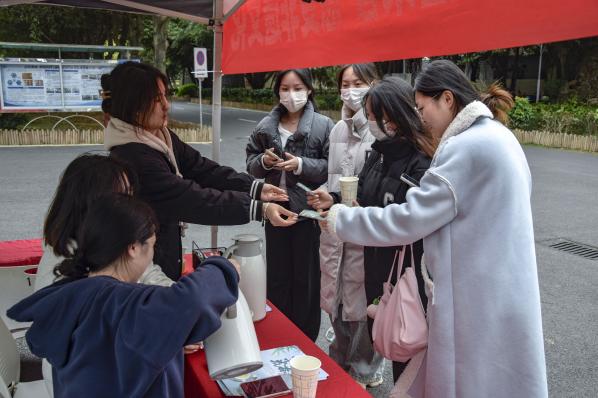活動伊始,實踐團成員向現(xiàn)場駐足的同學(xué)們發(fā)放宣傳單、分送茶包,介紹福州茉莉花茶的文化背景、茶葉產(chǎn)業(yè)的發(fā)展現(xiàn)狀和制作工藝,讓同學(xué)們感受到福州茉莉花茶背后的文化底蘊,并思考如何傳承和創(chuàng)新這一傳統(tǒng)文化,提升同學(xué)們的文化素養(yǎng)。