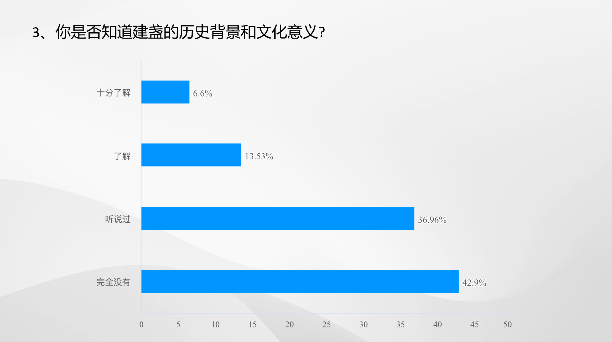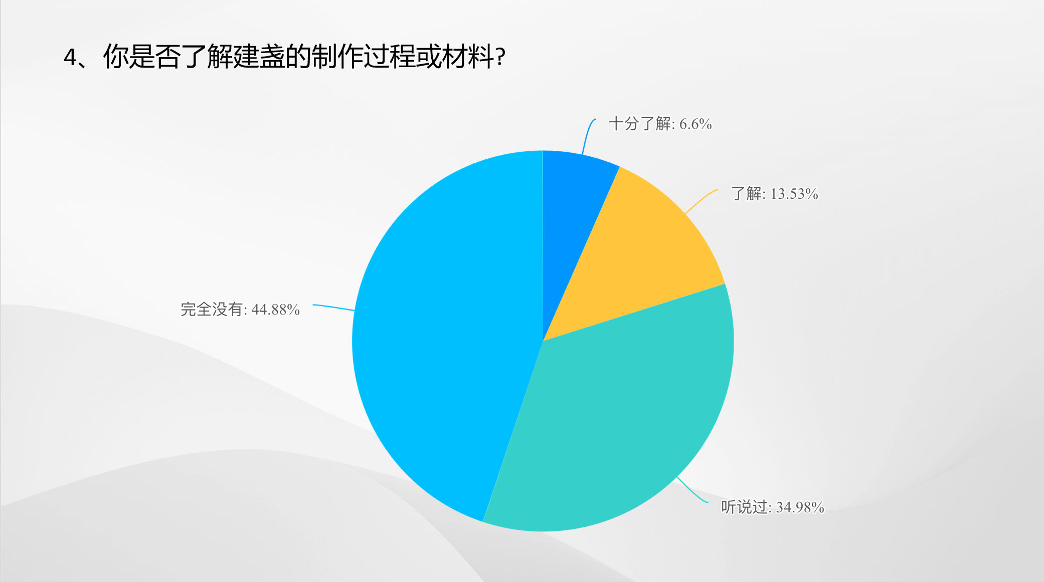 調研前期,實踐隊通過問卷調查,研究我院學生對于建盞的了解情況。調查結果顯示,大部分學生對建盞在歷史背景、文化內涵和制作工藝等方面的了解較為有限?;谡{查結果,學生們進一步明確了此次調研的目的和方向。