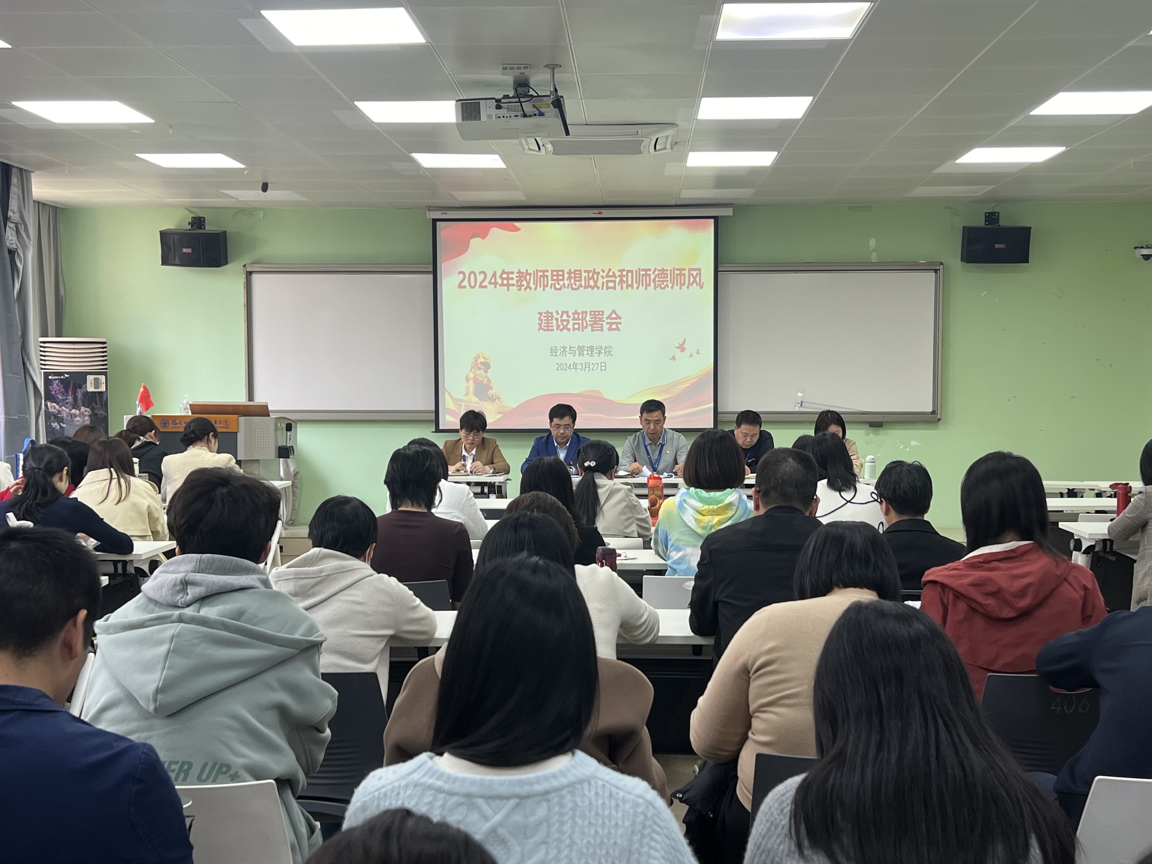 為不斷提高全體教師的思想政治素質(zhì)和職業(yè)道德修養(yǎng),突出全方位、全過程師德養(yǎng)成,2024年3月27日,經(jīng)濟與管理學(xué)院召開了2024年教師思想政治和師德師風(fēng)建設(shè)部署會。學(xué)院黨政領(lǐng)導(dǎo)、全體教職工出席會議。會議由院長房曰榮同志主持。