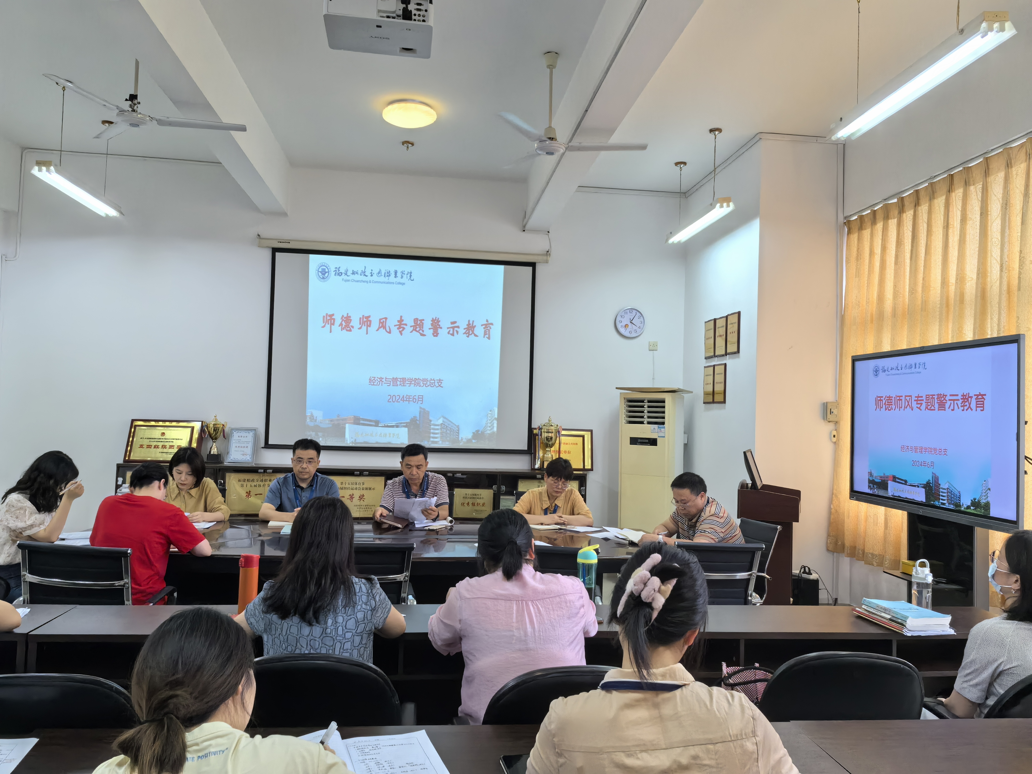 為進(jìn)一步加強(qiáng)師德師風(fēng)建設(shè),引導(dǎo)廣大教師自律自強(qiáng),形成自覺踐行良好師德、創(chuàng)造良好師風(fēng)學(xué)風(fēng)的校園環(huán)境,近日,經(jīng)濟(jì)與管理學(xué)院結(jié)合正在開展的黨紀(jì)學(xué)習(xí)教育,在全院范圍內(nèi)開展師德師風(fēng)學(xué)習(xí)及專題警示教育。