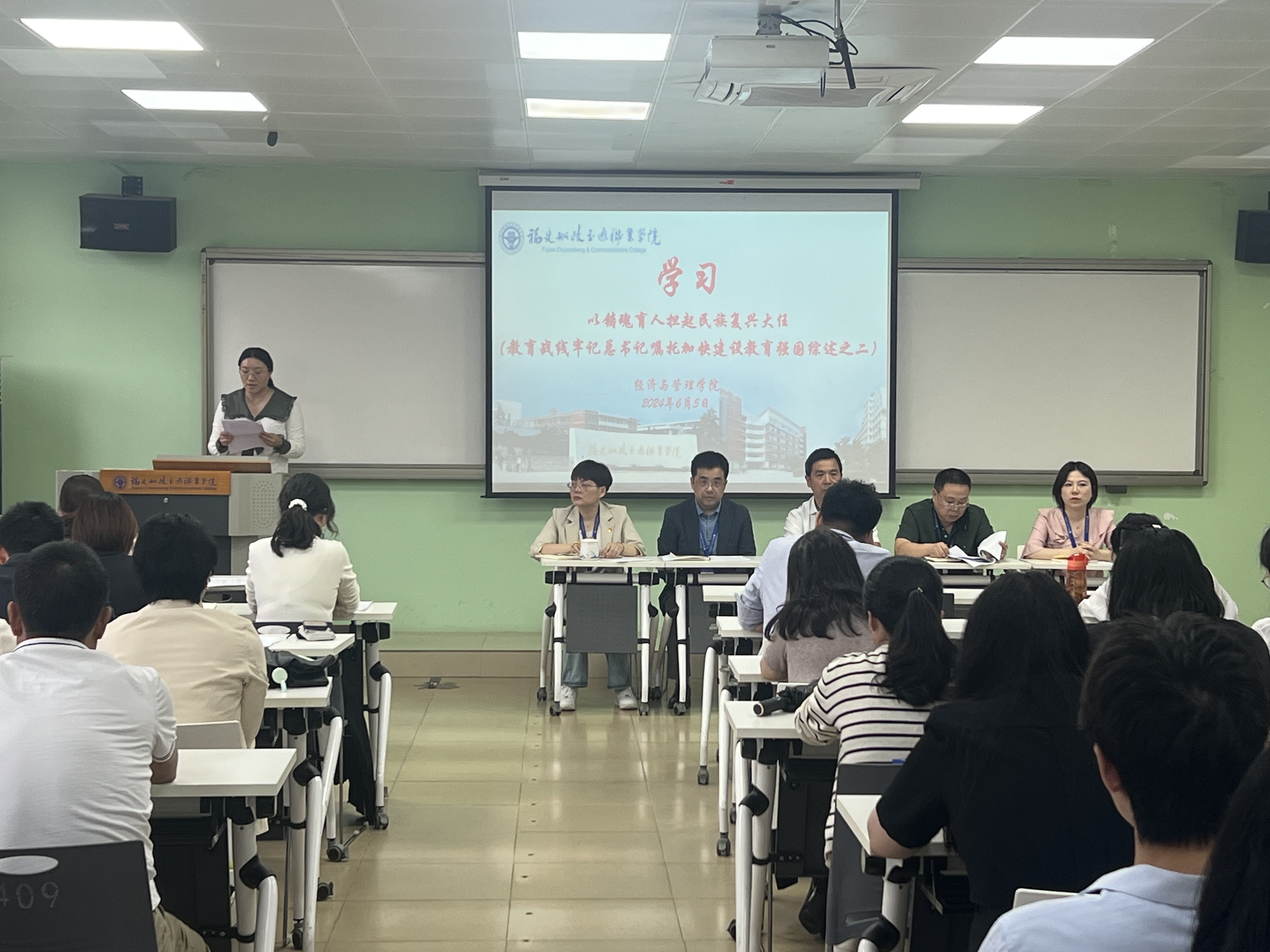 6月5日,經(jīng)濟(jì)管理學(xué)院召開全體教職工大會,院長房曰榮領(lǐng)學(xué)了《習(xí)近平對學(xué)校思政課建設(shè)作出重要指示》,引導(dǎo)我院教師努力培養(yǎng)更多讓黨放心、愛國奉獻(xiàn)、擔(dān)當(dāng)民族復(fù)興重任的時代新人,提高課程思政教育教學(xué)質(zhì)效。會上,教師代表傅一丹、林潔瑩領(lǐng)學(xué)了“以教育強(qiáng)國服務(wù)支撐中國式現(xiàn)代化”“以鑄魂育人擔(dān)起民族復(fù)興大任”“以教育之強(qiáng)夯實國家富強(qiáng)之基”“以教育之力厚植人民幸福之本”等教育戰(zhàn)線牢記總書記囑托加快建設(shè)教育強(qiáng)國系列綜述,進(jìn)一步增強(qiáng)教師的政治意識、政治能力,呼吁全體教師以高度的責(zé)任感和使命感,堅守教育初心,樹立良好的師德師風(fēng)。