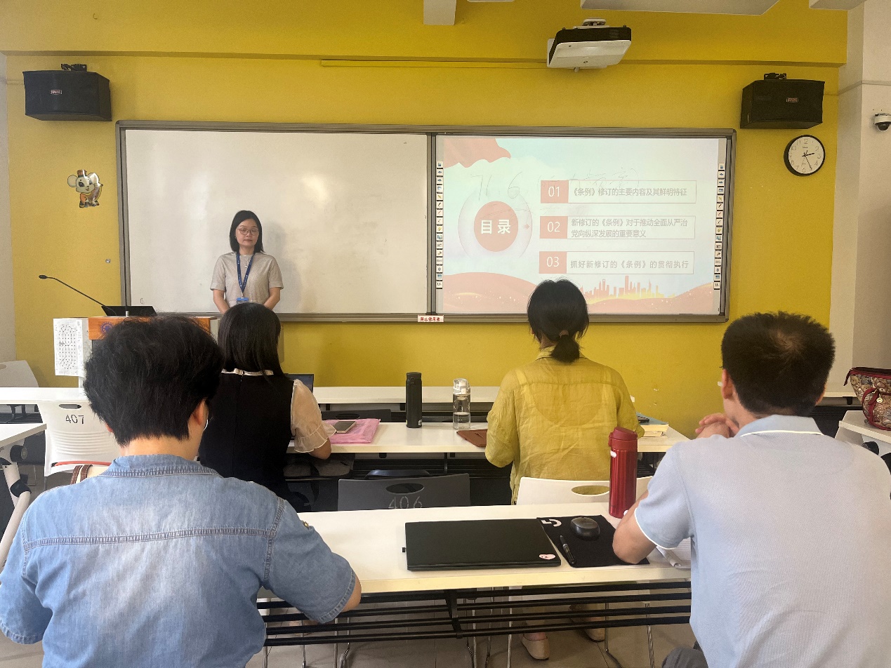 嚴(yán)敏琳同志要求大家要逐章逐條學(xué)習(xí)《條例》的內(nèi)容,進(jìn)步一明確日常言行的衡量標(biāo)尺,用黨紀(jì)校正思想和行動,提高自己的政治素養(yǎng)和道德水平,以更加飽滿的熱情和更加扎實(shí)的工作作風(fēng),投入到教學(xué)和科研工作中去,為培養(yǎng)更多的優(yōu)秀人才、推動學(xué)校的發(fā)展貢獻(xiàn)力量。