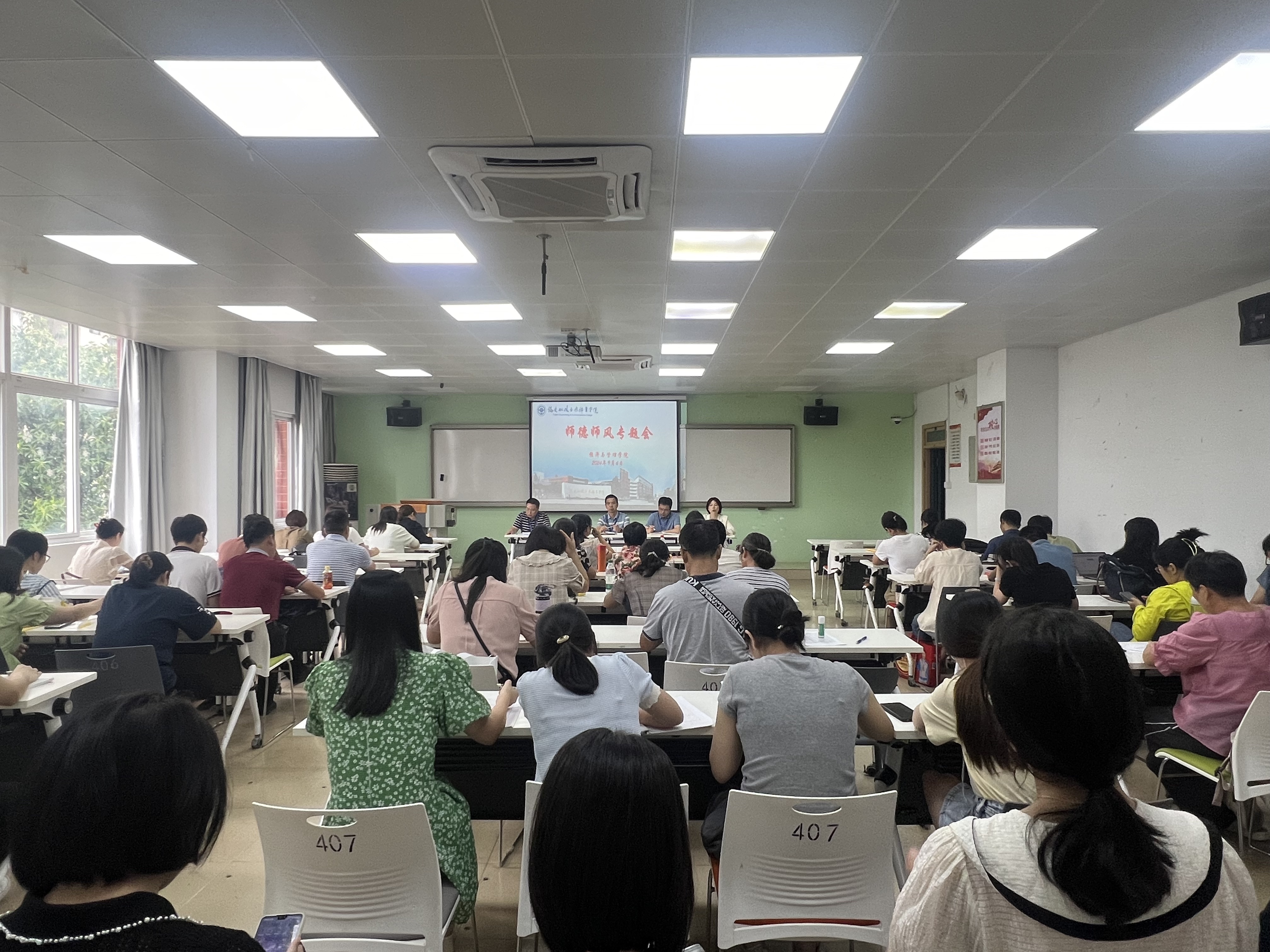 為大力弘揚(yáng)教育家精神,加強(qiáng)新時(shí)代高素質(zhì)專業(yè)化教師隊(duì)伍建設(shè),營(yíng)造尊師重教良好氛圍,進(jìn)一步推進(jìn)經(jīng)濟(jì)與管理學(xué)院師德師風(fēng)建設(shè)工作,9月4日,經(jīng)濟(jì)與管理學(xué)院召開(kāi)師德師風(fēng)教育專題會(huì)議,本次會(huì)議由黨總支書記俞素平主持,全體教職工參會(huì)。