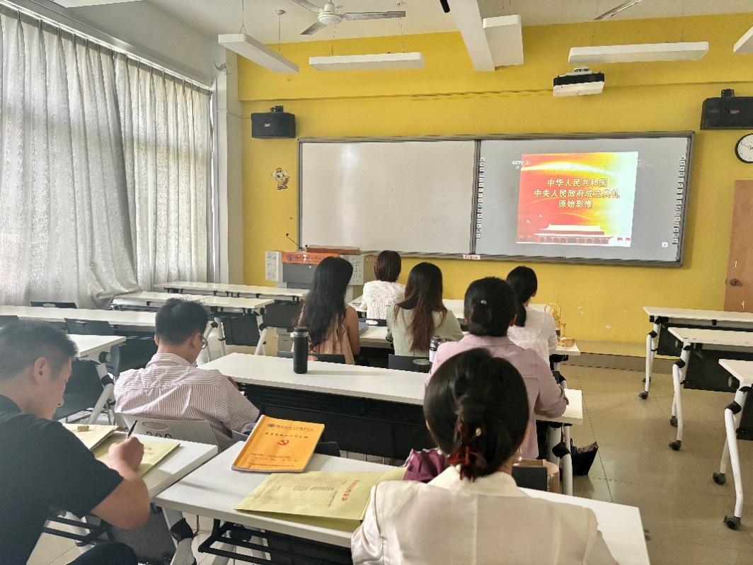 隨后,全體黨員教師一同觀看了由中央檔案館公布的開國大典彩色視頻。這段珍貴視頻是目前公開的關(guān)于開國大典視頻中內(nèi)容最完整、時(shí)間最長的視頻,真實(shí)還原了這一偉大的歷史時(shí)刻。觀看過程中,黨員們聚精會(huì)神,無不被那個(gè)莊嚴(yán)時(shí)刻所震撼,被革命先輩們的英勇奮斗所感動(dòng),仿佛見證了那段激動(dòng)人心的歷史。