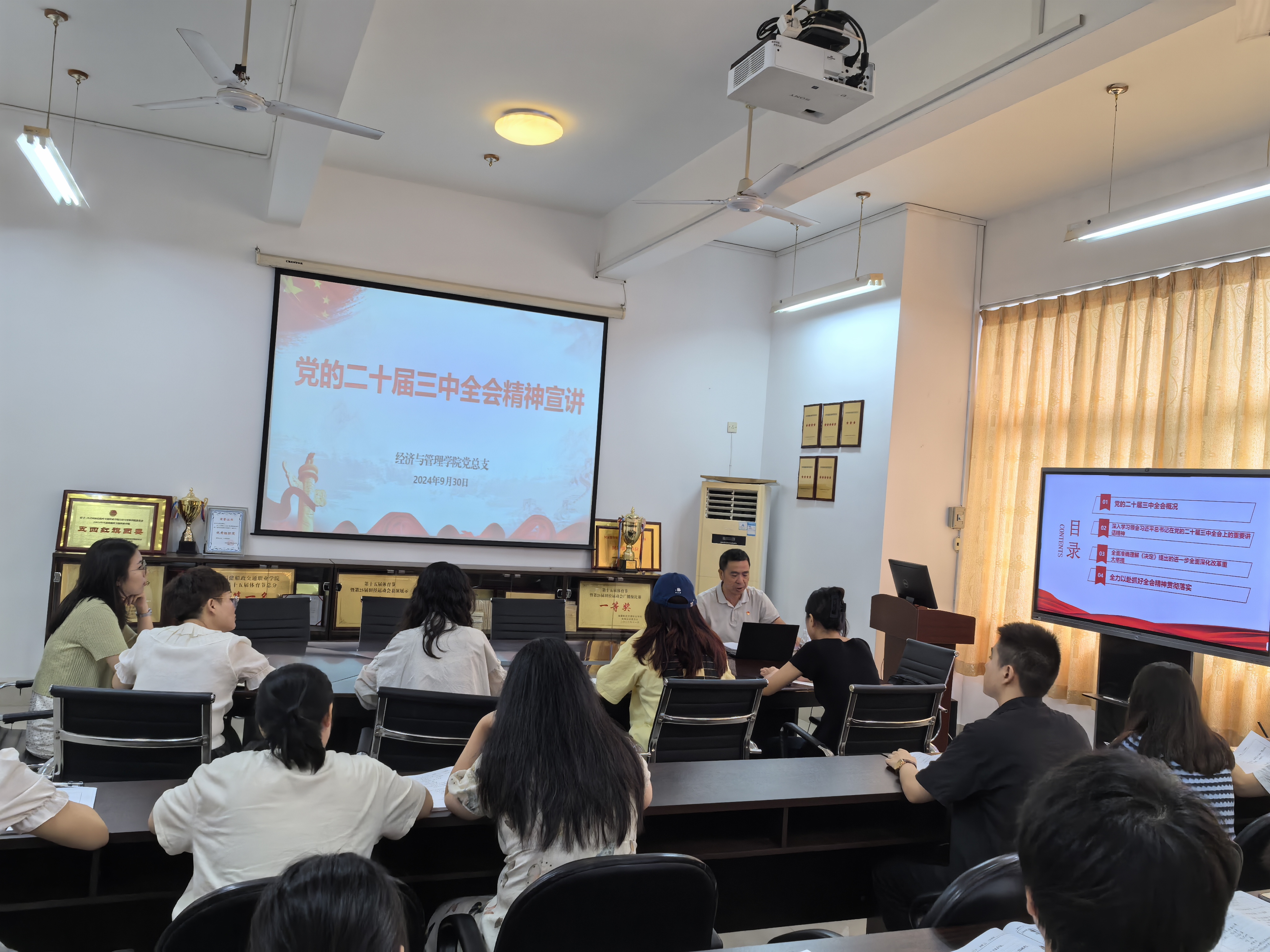 為深入學習貫徹黨的二十屆三中全會精神,引導黨員師生準確把握全會精神的實質和豐富內涵,筑牢思想根基、強化理論武裝,把思想行動統(tǒng)一到全會精神上來,把黨中央部署轉化為推動學院高質量發(fā)展的強大力量,9月30日,經濟與管理學院黨總支書記俞素平同志為經濟與管理學院第一、二黨支部黨員師生講授了一場精彩的專題黨課。