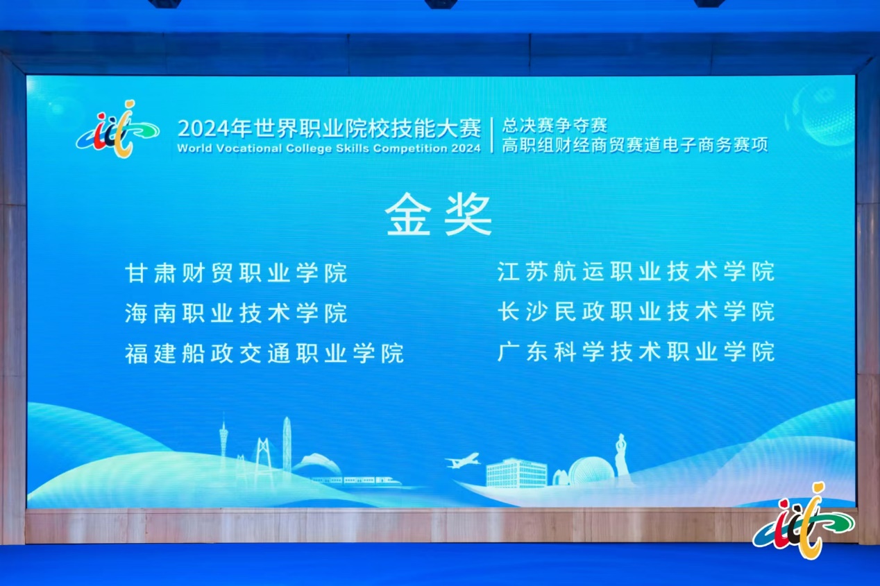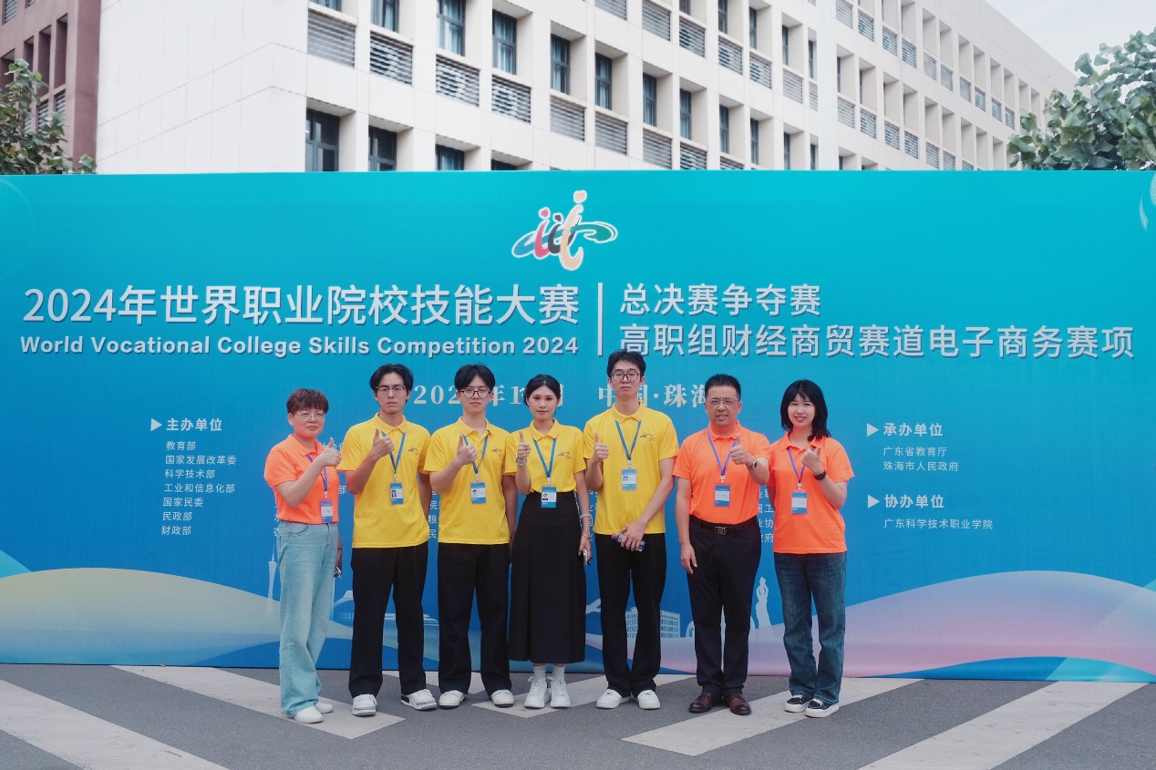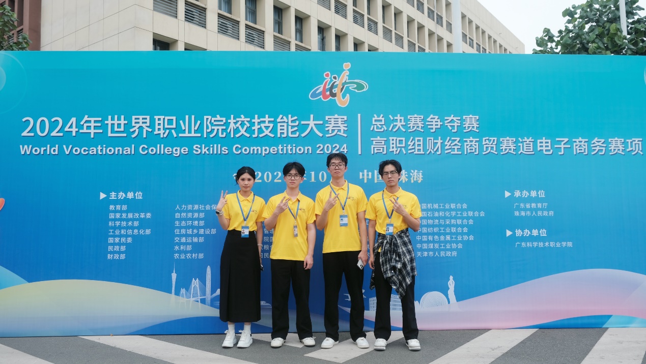 10月26日-10月28日,2024年世界職業(yè)院校技能大賽總決賽爭奪賽高職組財經(jīng)商貿(mào)賽道電子商務(wù)賽項在廣東科學技術(shù)職業(yè)學院開賽。該賽項吸引了全國高職院校63支隊伍252名選手同臺競技。我院由經(jīng)濟與管理學院院長房曰榮(領(lǐng)隊),林麗萍、方思兩位指導老師及胡慧武、馮晉、林祉龍、吳瓊四位同學組成的參賽團隊參賽,并在總決賽中喜獲金獎。