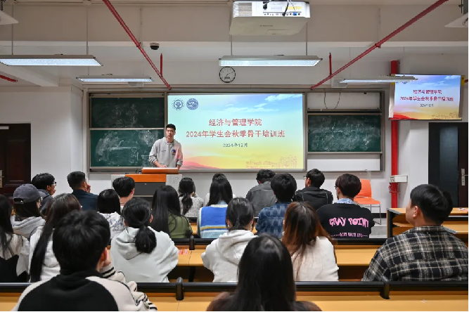 為深入學(xué)習(xí)貫徹黨的二十屆三中全會精神和習(xí)近平總書記關(guān)于青年工作的重要思想,提高團(tuán)學(xué)干部的政治素質(zhì)、專業(yè)素養(yǎng)和實踐水平。12月2日至3日,經(jīng)濟(jì)與管理學(xué)院于藝新樓403教室開展2024年學(xué)院學(xué)生會秋季培訓(xùn)。會議由學(xué)院學(xué)生會主席團(tuán)成員王鑫呈主持。