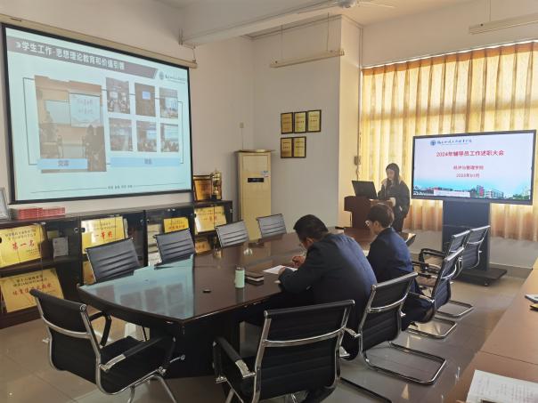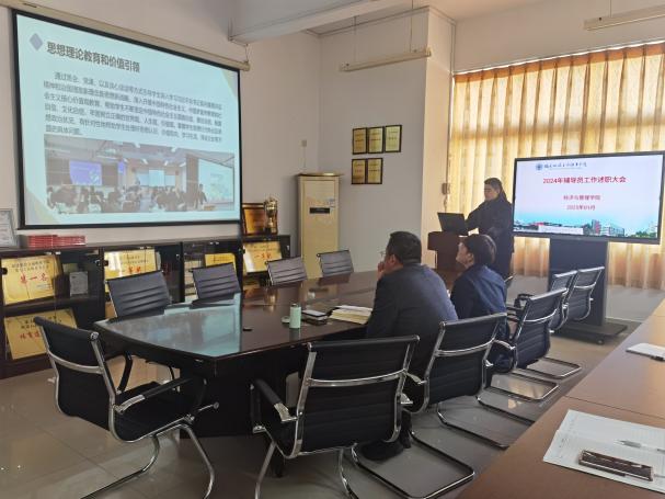 近日,經(jīng)濟(jì)與管理學(xué)院2024年度輔導(dǎo)員述職大會在學(xué)院順利舉行,學(xué)院黨總支副書記阮毅(主持工作)、黨總支副書記林麗萍及全體輔導(dǎo)員參加了此次會議。大會旨在總結(jié)過去一年中輔導(dǎo)員隊伍的工作成效,分享經(jīng)驗,并展望未來學(xué)生工作的發(fā)展方向。