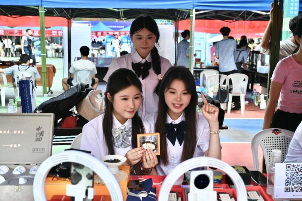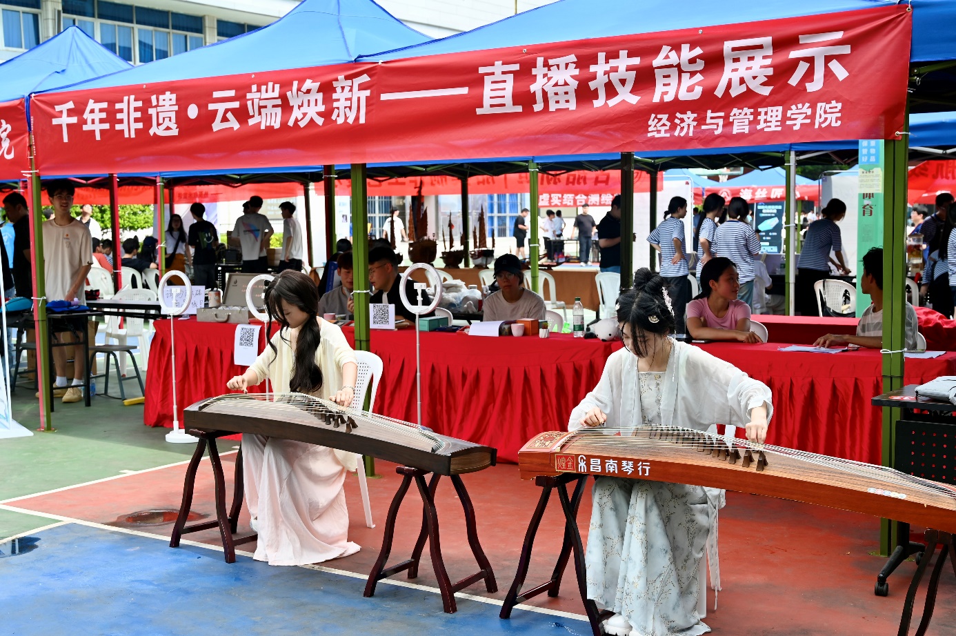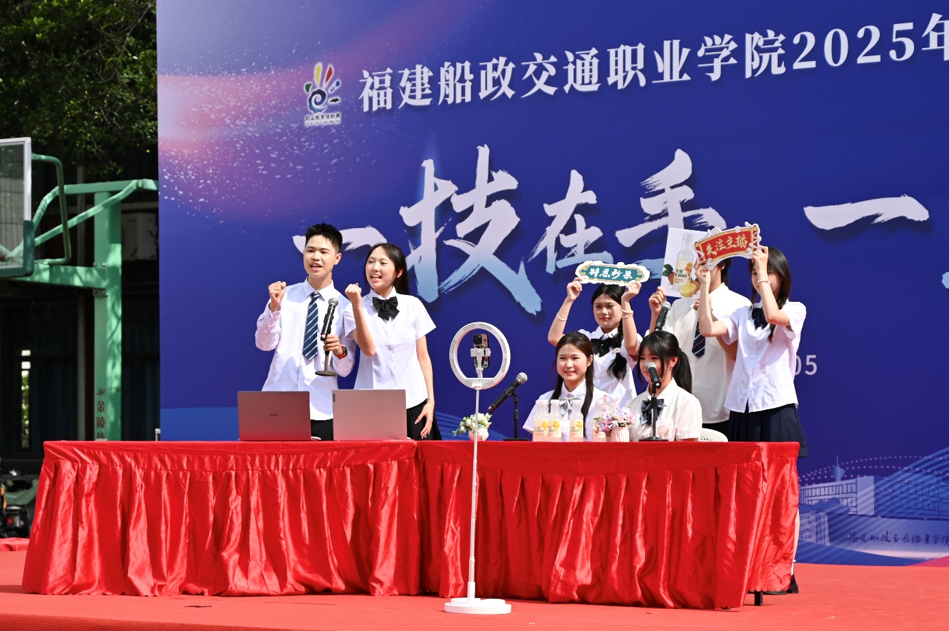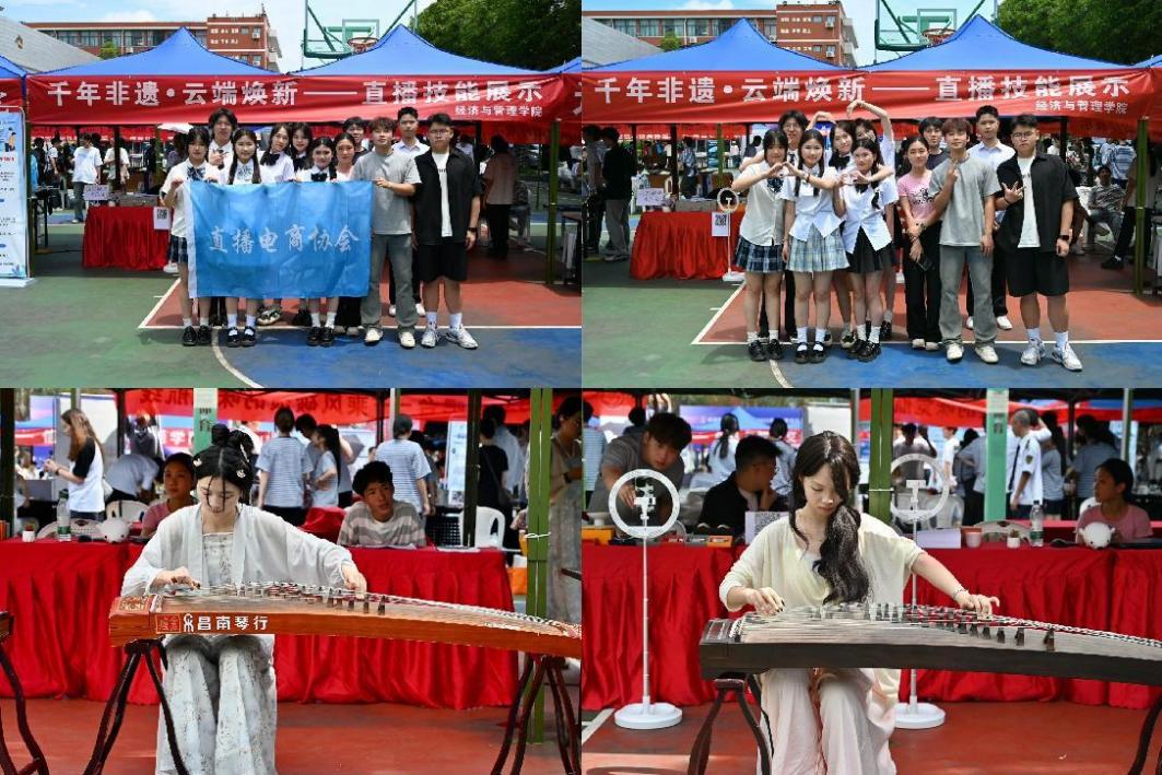 為積極響應(yīng)職業(yè)教育活動周號召,深化產(chǎn)教融合,提升學(xué)生實踐能力,5月17日在福道園文體中心前,經(jīng)濟(jì)與管理學(xué)院開展了“千年非遺?云端煥新——直播技能展示”2025年職教周活動。