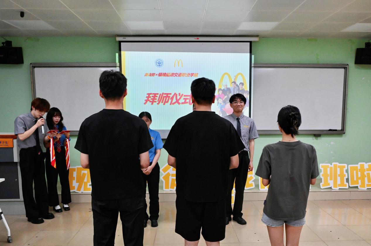 開班儀式上,第五屆訂單班的學(xué)徒們懷著崇敬之心,向麥當(dāng)勞導(dǎo)師們鞠躬行禮,敬上拜師茶。一杯香茗,傳遞的不僅是師徒情誼,更是知識(shí)與技能的傳承。