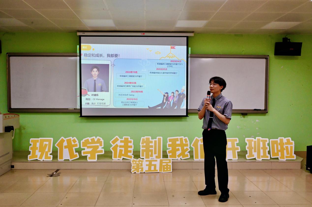 從第二屆訂單班成長(zhǎng)起來(lái)的葉建樂學(xué)長(zhǎng),如今已成長(zhǎng)為一名顧客體驗(yàn)經(jīng)理,獨(dú)立負(fù)責(zé)一家餐廳的所有業(yè)務(wù)。他熱情分享道:“在訂單班的學(xué)習(xí)與實(shí)踐,讓我快速掌握了市場(chǎng)營(yíng)銷與餐廳運(yùn)營(yíng)的核心技能。只要大家保持學(xué)習(xí)熱情,勇于挑戰(zhàn)自我,都能在麥當(dāng)勞收獲屬于自己的精彩!”