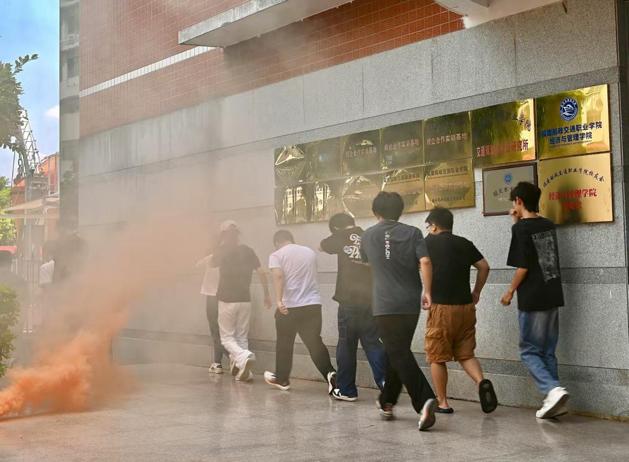 為筑牢校園消防安全防線,提升師生火災應急處置與自救互救能力,9月11日中午,我院在福船園組織開展2025年應急消防疏散演練,600余名師生參與活動。當日12點20分,模擬火災警報信號準時響起,參演師生迅速響應,嚴格遵循“低姿、捂鼻、靠右”的逃生規(guī)范,沿預定路線快速撤離。整個過程緊張有序、動作規(guī)范,高效完成從警報觸發(fā)到全員安全集結(jié)的全流程,切實強化了師生應急避險實操技能。