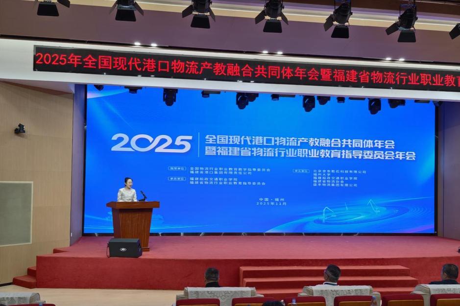 2025年11月14日,2025年全國(guó)現(xiàn)代港口物流產(chǎn)教融合共同體年會(huì)暨福建省物流行業(yè)職業(yè)教育指導(dǎo)委員會(huì)(以下簡(jiǎn)稱(chēng)“福建省物流行指委”)年會(huì)在福建船政交通職業(yè)學(xué)院隆重舉行。來(lái)自政府、行業(yè)協(xié)會(huì)、企業(yè)、普通高校、職業(yè)院校等相關(guān)領(lǐng)導(dǎo)、專(zhuān)家、負(fù)責(zé)人及管理骨干80余位代表齊聚一堂,共商現(xiàn)代物流職業(yè)教育高質(zhì)量發(fā)展大計(jì)。福建省物流協(xié)會(huì)副會(huì)長(zhǎng)兼秘書(shū)長(zhǎng)林福春,北京京東乾石科技有限公司大區(qū)總監(jiān)徐世文,福建省物流行指委主任肖舒平、常務(wù)副主任喻亮,我校副校長(zhǎng)陳常暉等出席大會(huì)。會(huì)議由我校經(jīng)濟(jì)與管理學(xué)院黨總支書(shū)記陳慧主持。