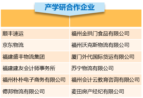 現(xiàn)代智慧物流應(yīng)用技術(shù)中心 與蘇寧云商股份有限公司、京東物流、順豐速運(yùn)、麥當(dāng)勞、盛豐物流集團(tuán)有限公司、廈門(mén)外代國(guó)際貨運(yùn)有限公司、福建建友會(huì)計(jì)師事務(wù)所、三熊科技等90余家大型企業(yè)建立了長(zhǎng)期穩(wěn)定的產(chǎn)學(xué)研合作及校外實(shí)踐教學(xué)基地。開(kāi)展“船政樸樸”“船政德邦物流”“船政蘇寧電器”等訂單班;與金拱門(mén)餐飲以及廈門(mén)外代國(guó)際貨運(yùn)有限公司合作開(kāi)展現(xiàn)代學(xué)徒制專班;成立電子商務(wù)創(chuàng)新創(chuàng)業(yè)教育改革試點(diǎn)專業(yè)。