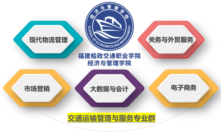 經(jīng)濟(jì)與管理學(xué)院介紹:弄潮商海 管理創(chuàng)新 成就出彩人生 經(jīng)濟(jì)與管理學(xué)院開(kāi)設(shè)有現(xiàn)代物流管理、電子商務(wù)、大數(shù)據(jù)與會(huì)計(jì)、關(guān)務(wù)與外貿(mào)服務(wù)、市場(chǎng)營(yíng)銷5個(gè)專業(yè),形成交通運(yùn)輸管理與服務(wù)專業(yè)群,為福建省職業(yè)院校服務(wù)產(chǎn)業(yè)特色專業(yè)群之一。