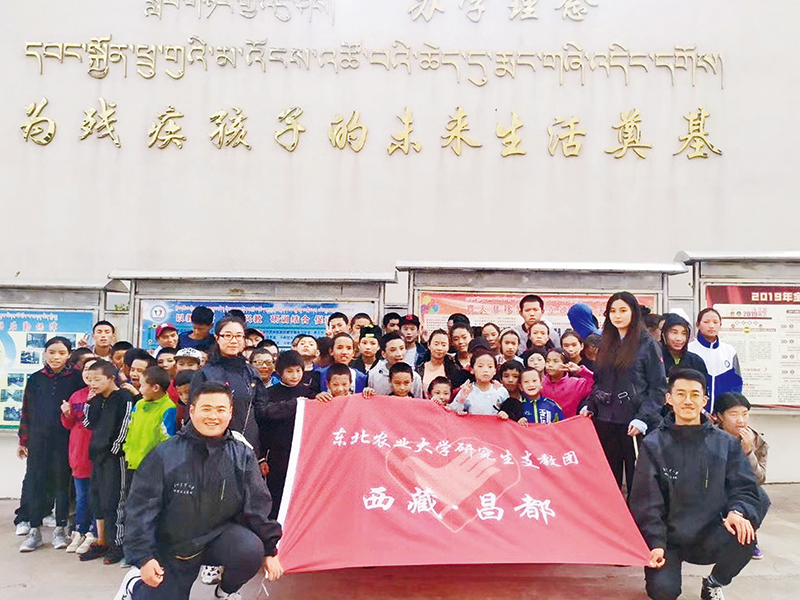 習(xí)近平總書記強(qiáng)調(diào),同人民一道拼搏、同祖國(guó)一道前進(jìn),服務(wù)人民、奉獻(xiàn)祖國(guó),是當(dāng)代中國(guó)青年的正確方向。他勉勵(lì)青年人到基層和人民中去建功立業(yè),讓青春之花綻放在祖國(guó)最需要的地方,在實(shí)現(xiàn)中國(guó)夢(mèng)的偉大實(shí)踐中書寫別樣精彩的人生。圖為2020年8月10日,東北農(nóng)業(yè)大學(xué)支教團(tuán)在西藏昌都市支教期間與學(xué)校師生合影。(新華社記者 楊思琪/攝)