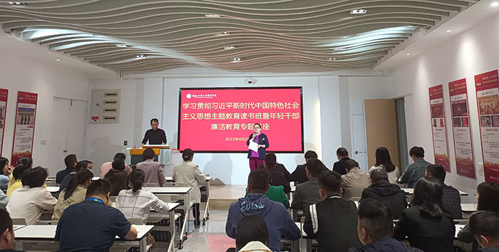 為深入貫徹落實黨中央關(guān)于加強新時代廉潔文化建設(shè)要求和省委教育工委關(guān)于廉潔學(xué)校建設(shè)的部署要求,推動我校學(xué)習(xí)貫徹習(xí)近平新時代中國特色社會主義思想主題教育走深走實,增強廣大年輕干部廉潔意識、風(fēng)險意識和責(zé)任意識。4月25日下午,我校邀請廈門海洋職業(yè)技術(shù)學(xué)院黨委副書記繆雄平為年輕干部作《扣好廉潔從政“第一??圩印薄穼n}講座。學(xué)校80后副科級以上年輕干部、各黨總支紀檢委員、紀委辦公室全體干部、校團委兩委委員近80余人到場聆聽講座。